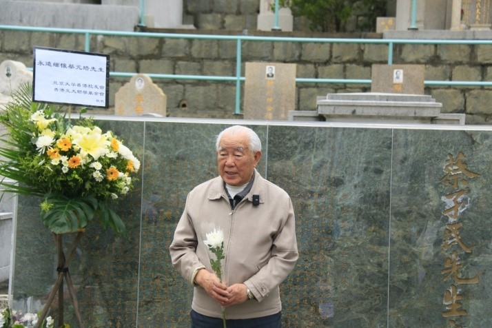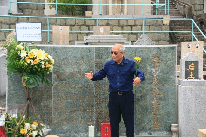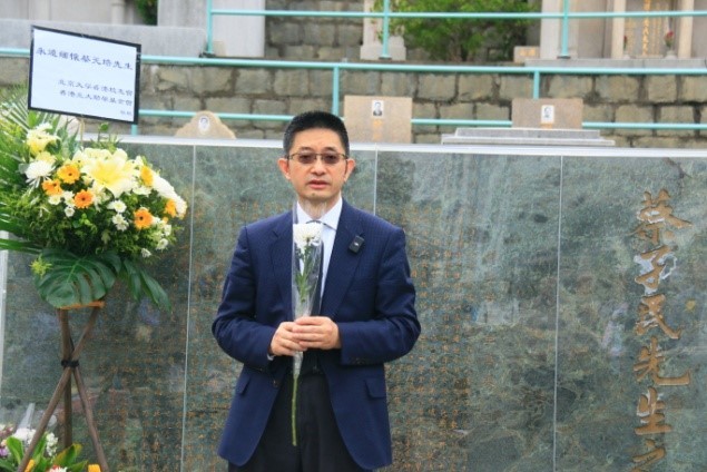 北京大學香港校友會會長及香港北大助學基金會主席劉祖繁主持儀式,在香港仔山華人公墓向蔡元培校長獻花祭拜。祭拜活動氣氛莊嚴肅穆,校友們手持鮮花,全體校友默哀三分鐘。默哀儀式後,每位校友將手中的鮮花靜靜地放在蔡校長的墓前,鞠躬致意,表達沉靜的緬懷之情。 劉祖繁致辭時表示,自新冠疫情以來,被隔離阻擋三年,這是第一次大規模參加紀念懷懷蔡元培校長的活動。今年祭拜北大蔡元培校長活動,是第一次向全球的北大校友網 上全程直播。希望通過這一次的直播,讓遠方不能前來的北大校友們追思蔡元培校長,表達對蔡校長懷念。也希望帶出一個更廣泛信息,蔡元培精神不僅屬於北京大學,他屬於全中國。 希望有更多的學者,研究人員對蔡元培先生的思想做更加深入的研究和推廣。香港經過了三年的封關,希望我們傳承蔡元培精神下,我們跟香港社會各界從新出發,共同推動經濟成長,推動我們中華文化。在社會保持自己的良知,保持自己的底線,為社會做出自己的貢獻。