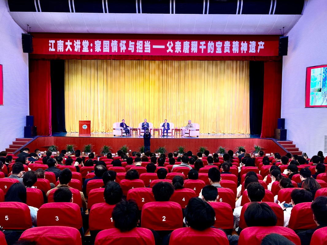 主辦方供圖 唐英年當天出席由無錫江南大學、無錫市歐美同學會和上海唐君遠教育基金會聯合主辦的“江南大講堂:家國情懷與擔當─父親唐翔千的寶貴精神遺產”分享講座。今年正好是“唐翔千誕辰百年”紀念,唐英年表示,上世紀80年代初期,父親唐翔千連續3屆被推選為全國政協常委。他亦非常榮幸,同樣三度獲委任為全國政協常委,上月出席兩會會議,發揮全國政協的雙重積極作用,並把國家的訊息有效傳遞,回到家鄉,亦趁機宣揚兩會精神。