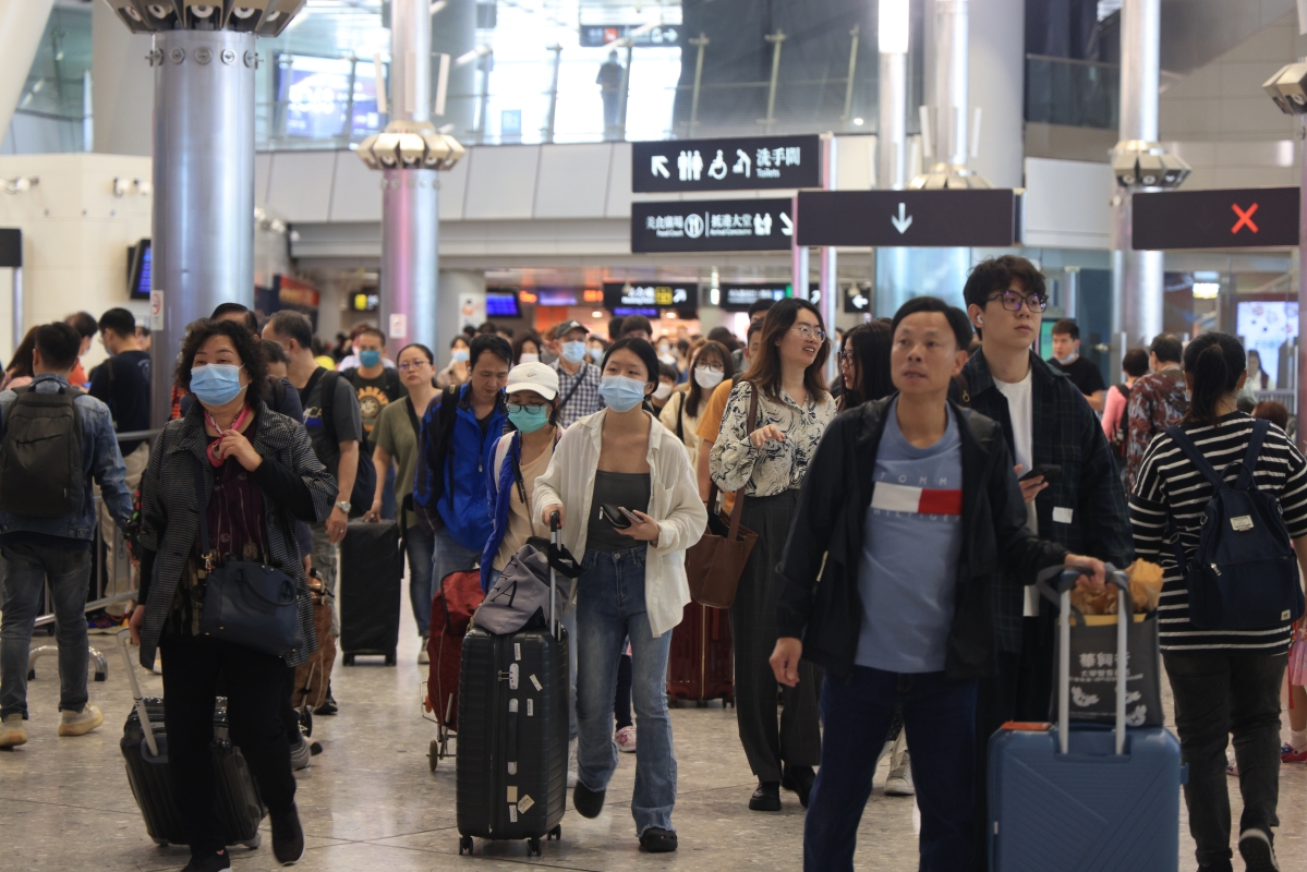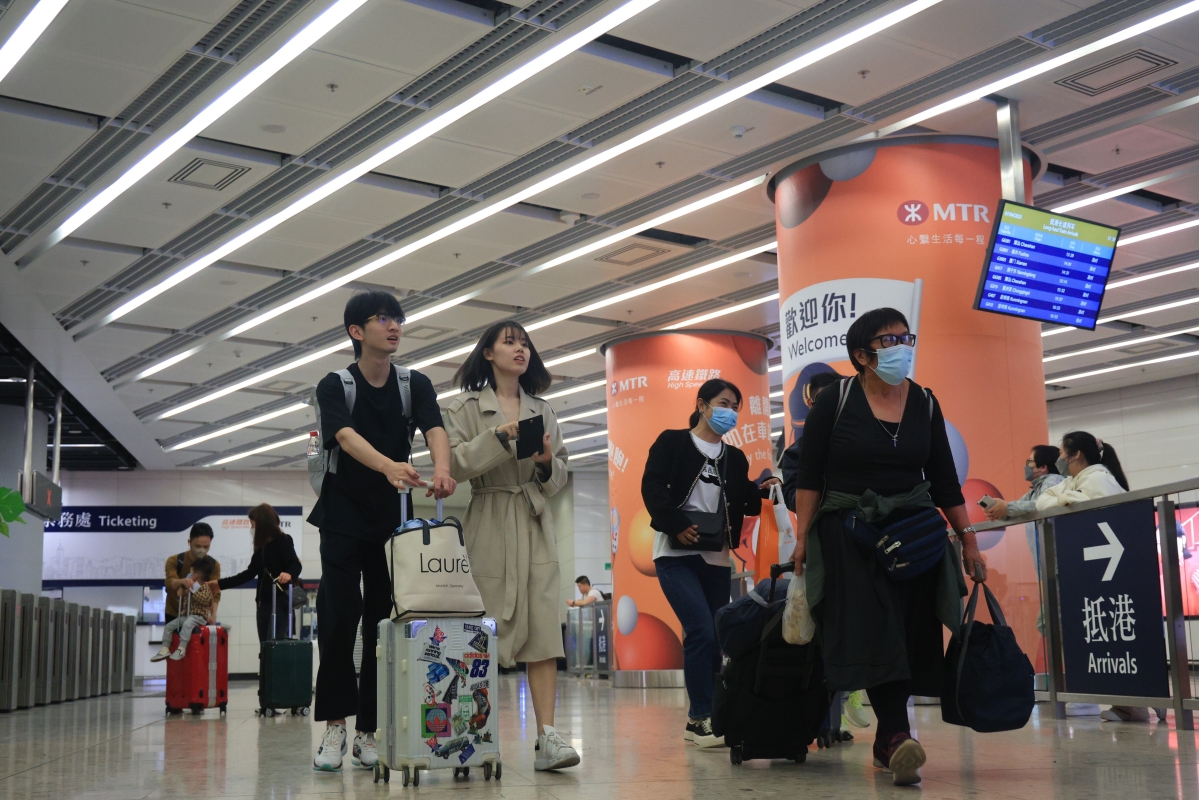 大批旅客乘坐高鐵抵達香港
