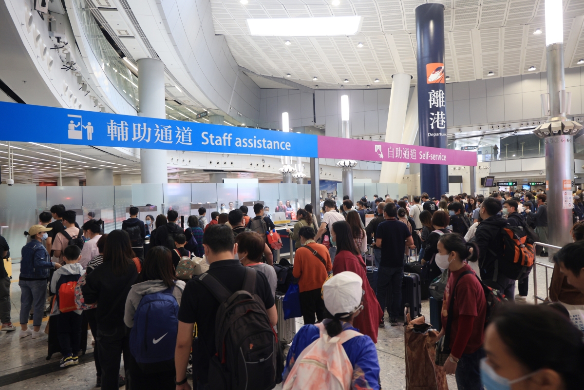 香港新聞網4月7日電(記者 許其皓)今年4月7日是是香港全面復常後首個復活節假期的首日,當日,香港四處充滿活力,回歸到疫情前的樣貌。 當日一早,記者到訪高鐵西九龍站看到,客流量明顯高於平日。抵港出口有乘客拎著大包小包,帶著一家老小抵達香港。在離港大堂可見人頭攢動,大批旅客有序排隊過關乘坐高鐵前往內地。而候車大堂更是坐滿了等車的乘客。