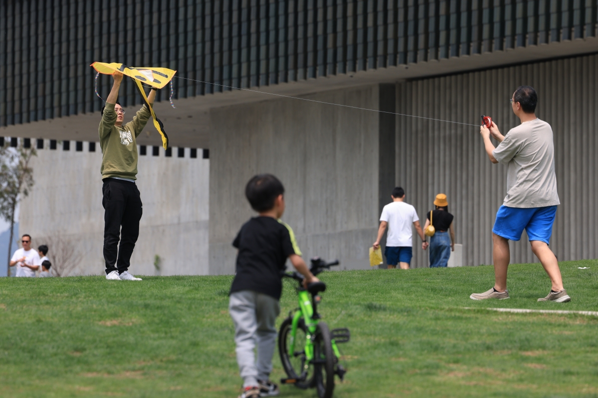 高鐵西九龍站離港大堂人頭攢動 在西九文化區,大批市民乘著陽光迎著風度假休閒,有市民在草坪上露營野餐,有市民騎著單車追風,有市民在放風箏……