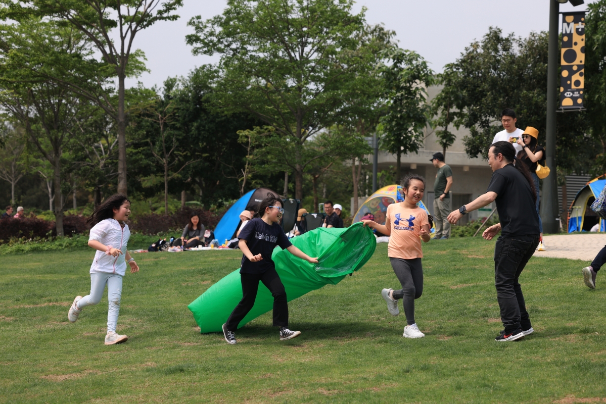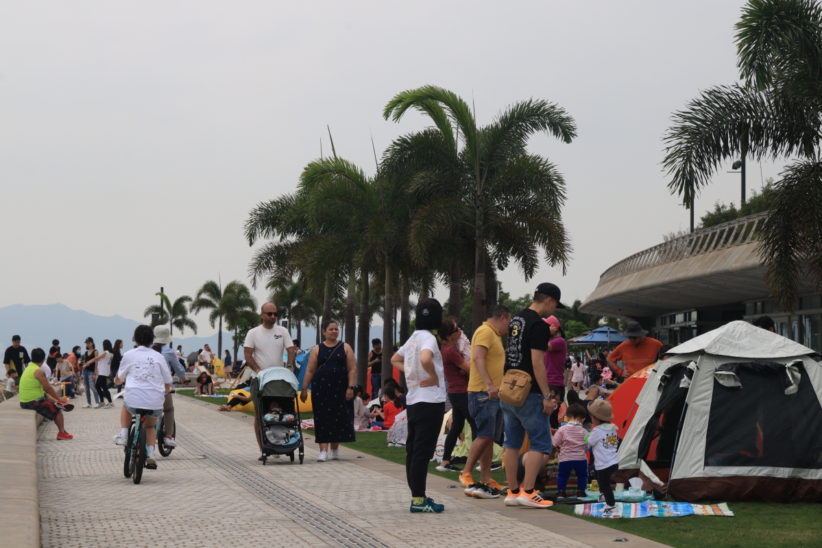 市民在西九文化區露營度假