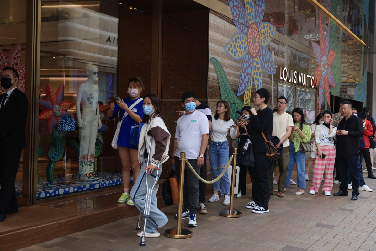 海港城一家奢侈品店外排起了人龍