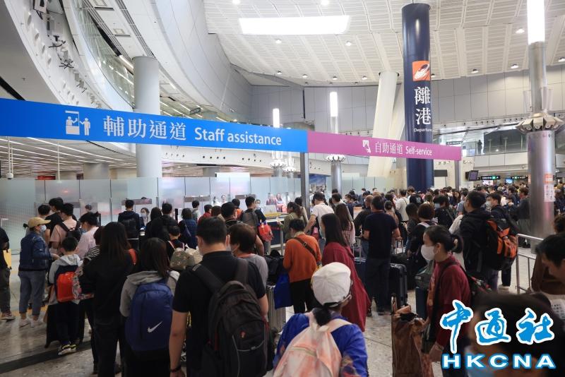 香港中通社4月7日電 7日是香港復活節假期首日,香港現出遊人潮,各口岸人頭湧湧。入境處早前估計當日是陸路出境高峰期,料約52萬人次出境。