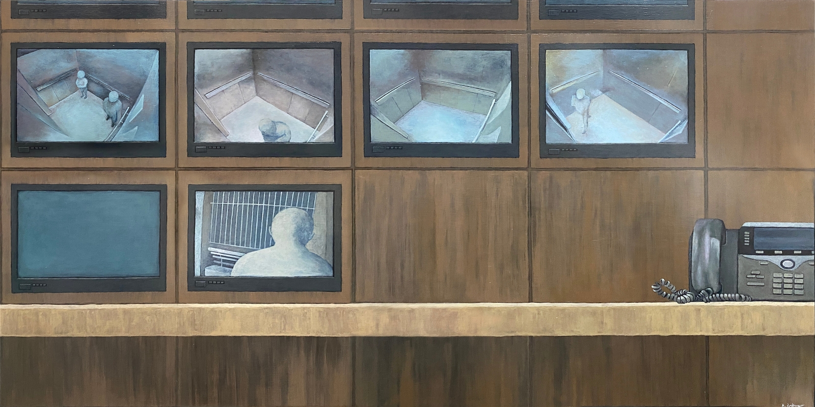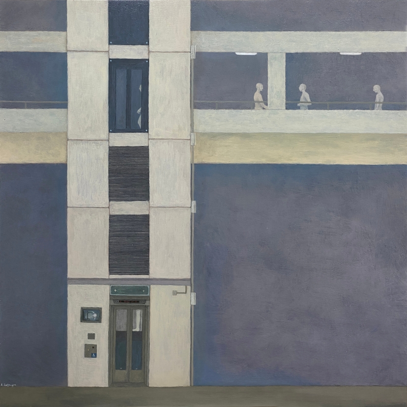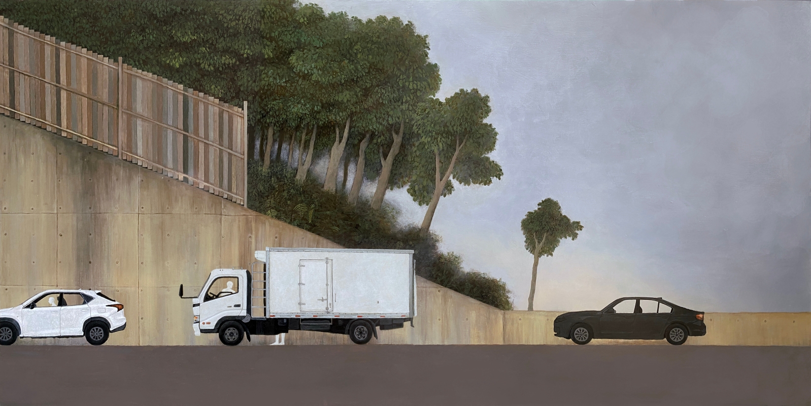 《序列》從橫向線性方向觀察城市的排序,聚焦於環境空間序列中各種景觀的秩序感,記下線上各點之間的關聯和結構的協調美。公路旁默默林立的樹木、馬路上靜靜排隊的車列、影子在光的舞弄下的序列,這些平日不起眼的場景細節,在李欣儀眼中,有着堅不可摧的規律,共同維護着宇宙的秩序。 這次展覽一共展出14件木板壓克力繪畫作品,包括一件影片定格動畫。《序列》刻意營造一種遊走在具象與超現實主義畫派之間的畫風,用低飽和度的色彩,配以虛實相間的線條,塑造一個猶如科幻小説場景的異度空間。在這個被神秘色調渲染的空間裏,一切井然有序,欄杆筆直整齊,就連橋上的行人亦步操般有規律地行走着。種種視覺效果上的形態序列,映射着上班族每天周而復始的生活模式。