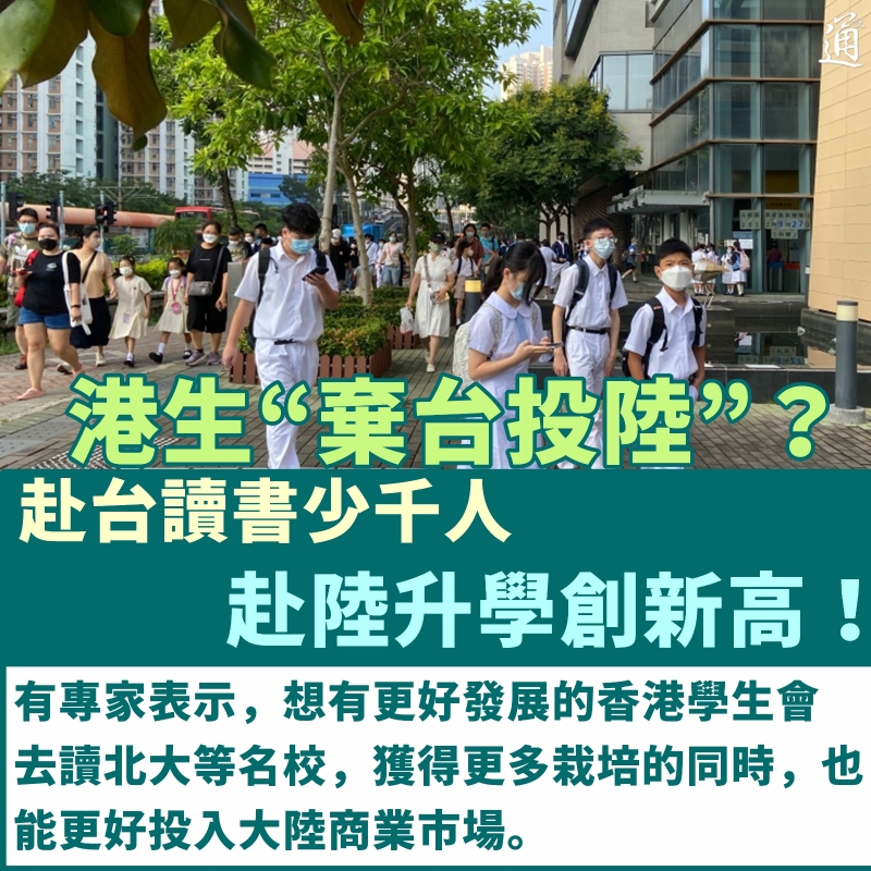 香港新聞網4月14日電 港生升學熱門地台灣不“香”了? 港生赴台就學人數一度在2021年創下歷史高峰,達到3110人。不過受港人移台熱度降低等因素影響,2022年港生赴台升大學比前一年(2021年)減少近千人,僅有2149人。 目前台灣正面臨少子化問題,不少學校寄望招募境外生,但受兩岸情勢影響,過去曾佔境外生1/4的陸生2023年將迎來“清零”。屋漏偏逢連夜雨,現時港生招生亦迎來下坡。 據台灣《聯合報》報道,僑外生在台校友聯誼籌備會創會會長李三財表示,2021年港生赴台現象形同社會不穩下的外溢現象,當年教育、商業移民等均增。但隨時事緩和,加之台灣“移民”政策緊縮影響留學動機,他評估港生赴台高點已過。 不赴台的港生都去了哪兒?除留港升學外,統計發現,現時赴陸升學的港生越來越多了! 升學輔導資訊平台《大學問》網站日前公布數據,2012至2022年港生赴大陸升學的人數及比例,呈現穩定增長,共計有1萬3190名考生報名。其中該年度DSE(香港高考)成績報名的考生達到4890人,人數創近十年歷史新高,報名人數佔DSE考生人數9.8%,代表平均10名DSE考生就有1人準備赴大陸唸書。