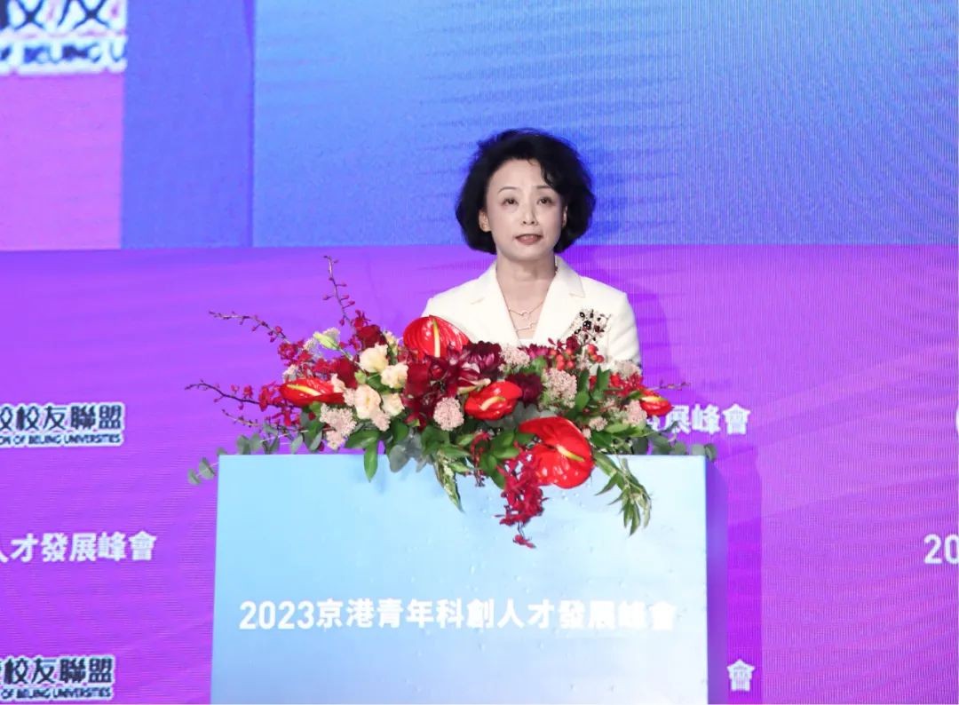 圖片來源:香港北京高校校友聯盟 李然會長在致辭中表示,北京作為首善之都,在資金、人才、科技等方面都有著獨特優勢,要充分發揮北京高質量發展新勢能,與香港聯通世界的獨特優勢整合再發,將推動京港科技創新合作邁入新階段,更好融入國家創新發展大局、助力香港早日成為令全球矚目的國際創科中心,成為京港與世界共贏未來的重要戰略樞紐,為京港兩地青年科創事業創造無限機遇,為搭建起北京“國際科創中心”和香港“國際創科中心”深度合作的橋樑和紐帶。她表示,京校聯成立以來,會員已經涵蓋了包括北京17所高校在內的全國人大及政協、教育界、工商界、金融界、僑界和專業界等界別人士,截至目前,個人會員和團體會員總數達11000多人,在北京各高校畢業或培訓後回到香港的校友已累計達十萬人。京校聯以“人才培養、科技創新、文化交流、服務社區”為中心,扎實開展各項工作,陸續推出“京港青年科技創新促進計劃”、“京華文化沙龍”和“公益進社區”等系列活動,行政長官在不到一年內四次蒞臨或視頻致辭參加京校聯的活動,對於京校聯的工作給予了高度的評價。京校聯將繼續擴大凝聚香港校友力量,壯大愛國愛港青年人才隊伍,使其成為香港融入國家戰略發展大局,香港長期穩定繁榮發展,實現中華民族偉大復興發揮其獨特作用的重要平台。此次峰會中,由京校聯組建的“百家機構服務團”也參與到峰會活動中,全力支持國內外頂尖科研機構、科研人才、科研專案的發展和落地。為實現京港兩地高科資源差異化優勢互補、產業優勢對接,進一步促進京港兩地在科創人才、研發專案、科研成果轉化等方面的深度合作;助力香港新階段與國家新征程相交匯,助推京港兩地在國家科技強國戰略中,發揮最大作用,貢獻青年力量。