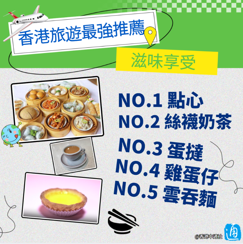 香港新聞網4月20日電 香港旅發局早前邀請市民投票選擇出最愛的香港食、玩、景點推薦給遊客,由三萬人選出的結果昨日(19日)出爐。 美食方面,最多人推薦旅客品嚐點心,其次就是茶餐廳的絲襪奶茶、蛋撻、雞蛋仔,雲吞麵亦榜上有名。