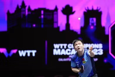 香港新聞網4月21日電 由體育局、世界乒乓球職業大聯盟(WTT)及銀河娛樂集團主辦、澳門乒乓總會協辦的“WTT 澳門冠軍賽2023─由銀河娛樂集團呈獻”20日續在塔石體育館上演多場精彩16強賽事,世界“一哥”樊振東直落3局輕取韓國李尚洙,強勢闖8強;惟世界“一姐”孫穎莎則在落後兩局的劣勢下,連贏三局反勝德國韓瑩驚險晉級。