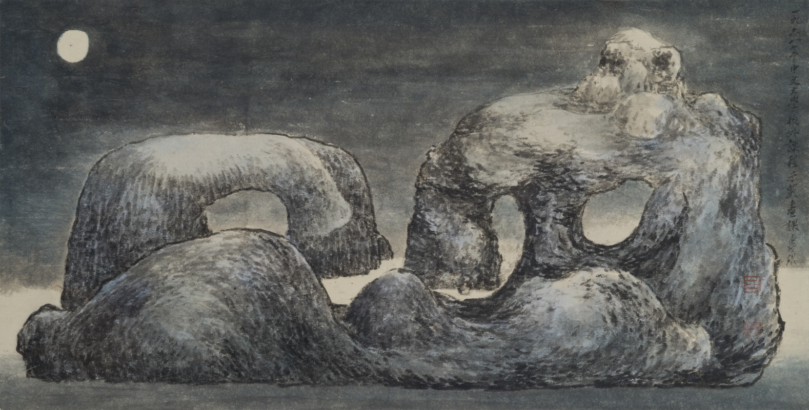 圖片來源:香港中文大學。呂壽琨《石猿望月》(1968)中大文物館藏
