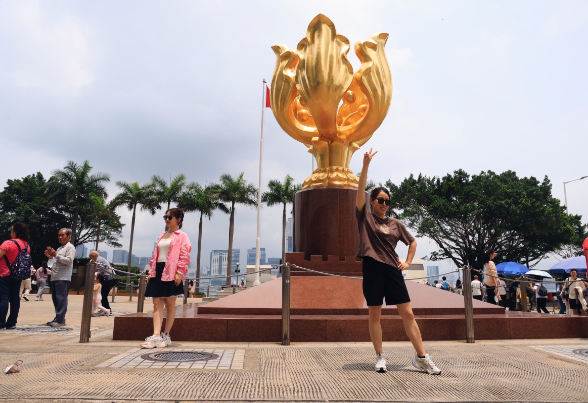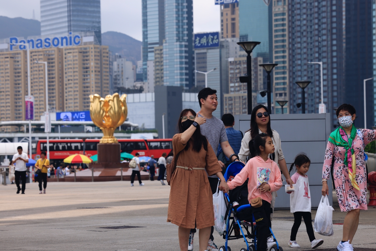 香港新聞網4月29日電(記者 曹文毓) 4月29日,香港金紫荊廣場,見到衆多游客和觀光巴士,亦見到商場人流增多,不少餐飲店滿座。當日是內地五一黃金周假期首日,截至上午10時,各口岸共有73280人次入境。