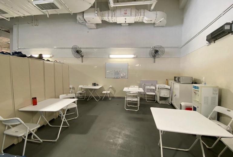 圖片來源:政府新聞網。圖示離街垃圾收集站内的員工休息/用膳地方。 另外,由於夏季即將來臨,食環署已向部門所有戶外清潔員工派發便攜式掛腰風扇,在天氣炎熱時為他們降溫。署方亦已由去年起,在批出新服務合約時加入新合約條款,要求承辦商為須在戶外工作的員工提供便攜式掛腰風扇。