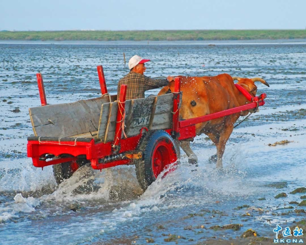 台灣彰化縣芳苑鄉以產蚵聞名,擁有大面積的潮間帶濕地,民眾可搭牛車或坐鐵牛車到蚵田體驗,挖文蛤、鮮蚵、重拾以前芳苑養蚵人家古早風情。挖蛤蜊、鮮蚵結束後就是吃現場碳烤鮮蚵、香氣四溢,大人小孩都玩得相當開心。香港中通社圖片
