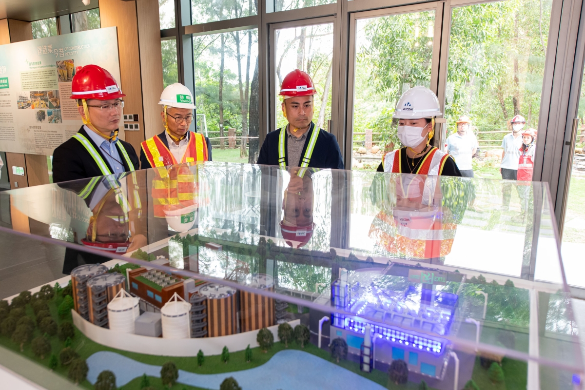 圖片來源:政府新聞網。圖示立法會議員視察有機資源回收中心第一期(O·PARK1)內處理廚餘設施的運作。
