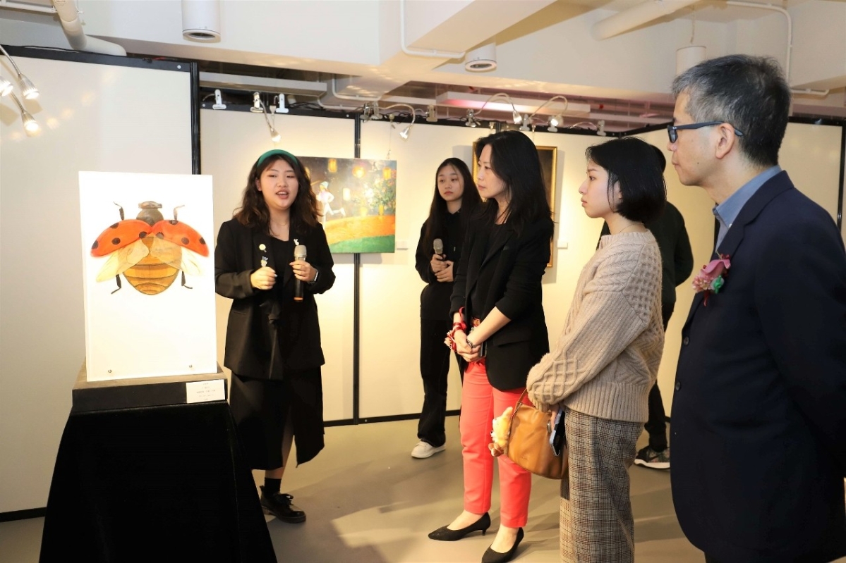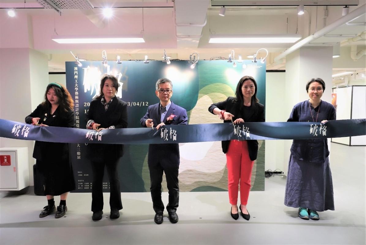 圖片來源:澳門新聞局 開幕儀式由銀河娛樂集團基金會“銀河藝萃”藝廊經理暨策展人林毓珊、鏡海藝術教育中心校長查蕊,以及澳理大藝術及設計學院院長黎明海、視覺藝術課程主任黎美琪、參展學生代表吳佳瀞主禮。其後,由參展學生進行現場導賞及作品介紹,嘉賓對學生的創作意念給予好評,並肯定澳理大對藝術的兼容並蓄與革新精神。