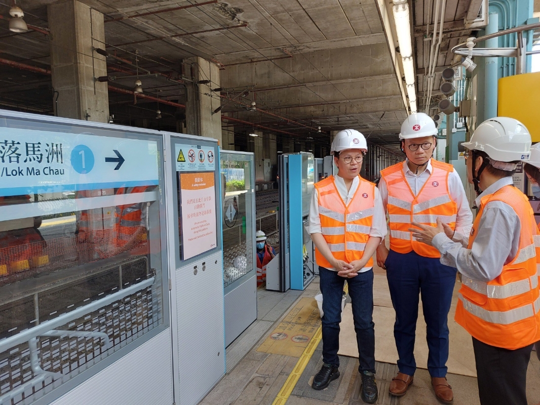 香港新聞網5月4日電 香港民建聯立法會議員兼鐵路事宜小組委員會主席陳恒鑌,以及立法會議員兼保安事務委員會主席陳克勤4日獲港鐵公司邀請到馬場站視察自動月台閘門安裝工程進度。 陳恒鑌表示,他指民建聯爭取東鐵線全線安裝月台幕門超過十年,十分樂見安裝工程正式進行。他期待工程盡快順利完成,以落實東鐵全線裝有月台閘門,保障候車乘客安全。 陳克勤表示,鑑於工程無法在列車運作期間進行,而施工範圍多達35個月台,工程存在相當難度,但為讓乘客盡早使用閘門,他們在完成測試工序後,會採取“隨安裝隨使用”同步方法,即是日間行車時間,月台會出現半完成安裝並同時使用情況,港鐵屆時會加派職員到場協助乘客。