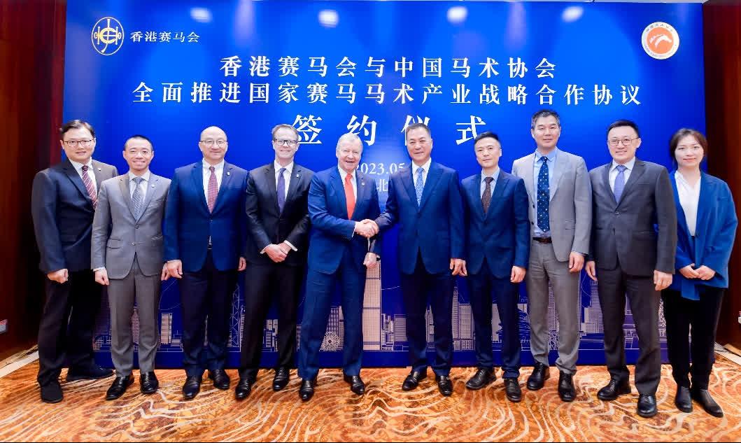 簽約儀式上,馬會行政總裁應家柏(左五)、賽馬事務執行總監夏定安(左四)及公司事務執行總監譚志源(左三)與中馬協主席張小寧(右五)和秘書長鍾國偉(右四)合照。(受訪者供圖) 據香港文匯網報道,馬會於2020年與中馬協簽訂為期五年的協議,支持協會建立一套適合內地馬術行業發展需要的人才培訓課程。馬會同時向中馬協提供資金支援,在全國普及和推廣相關課程。 為了全面推進國家賽馬馬術產業戰略合作,今天在馬會行政總裁應家柏和中馬協主席張小寧的見證下,雙方簽署補充協議,延長合作期限至2028年5月。馬會計劃贊助中馬協在合適的場地為已適當註冊賽駒舉辦速度賽馬高級別賽事,並在賽事期間為受邀的行業人士提供技術工作坊,以提升其技能。馬會亦將透過參與中馬協速度賽事委員會,為內地速度賽馬領域的行業標準提供技術建議。 馬術賽事方面,馬會則計劃與中馬協及相關省市馬術協會合作,在粵港澳大灣區的合適場地中舉辦馬術賽事。 另外,雙方同意在馬術人才培訓上合作,包括為內地及香港青少年提供培訓或比賽的發展機會,馬會亦計劃聯同中馬協在大灣區舉行部份國際馬術聯合會(Fédération Equestre Internationale)中的技術官員培訓課程,共同支持內地及香港馬術人才發展。 應家柏說:“我們很高興今天與中馬協簽署補充協議,以鞏固雙方持續發展的伙伴關係。國家體育總局及農業農村部聯合發布的《全國馬產業發展規劃》,為國家提供了堅實及優質的馬產業藍圖。透過與中馬協攜手合作,我們有信心將為內地馬產業帶來重大裨益,並有助實現《全國馬產業發展規劃》中的目標和願景。” 他同時表示:“是次與中馬協加強合作,足證馬會對貢獻國家發展的長期承諾。我們期待與中馬協合作,令國家馬產業得以進一步發展,並向世界展示中國的美好故事。” 香港賽馬會擁有世界一級的設施,以及承辦大型國際馬術賽事和豐富的經驗,能夠為馬術項目和賽馬賽事中的馬匹檢疫、馬匹運輸、隔離以及藥檢提供國際標準的技術支援。從2008年承辦北京奧運會馬術項目到2010年支援廣州亞運會馬術項目,再到從化馬場的建設和運營,馬會為融入國家馬術事業及大灣區馬產業的發展不遺餘力。未來也將持續融入國家體育發展的宏圖,推動體育事業協調發展。 【編輯:凌玉辉】