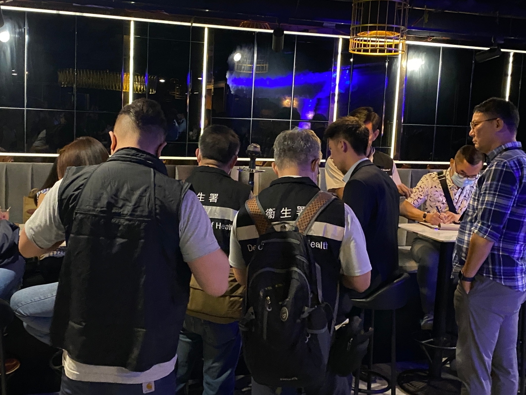 圖片來源:政府新聞網圖示執法人員在尖沙咀一間酒吧進行執法工作。 控煙酒辦於4月開始進行連串行動,打擊在酒吧/食肆非法吸食水煙行為。控煙酒辦人員已到訪百多間位於中環、尖沙咀及旺角的酒吧/食肆,宣傳遵守相關禁煙規定。隨後,控煙酒辦進行針對性巡查及執法行動,連同昨晚的行動,共發出27張定額罰款通知書予在8間酒吧/食肆室內吸用水煙的違法人士。