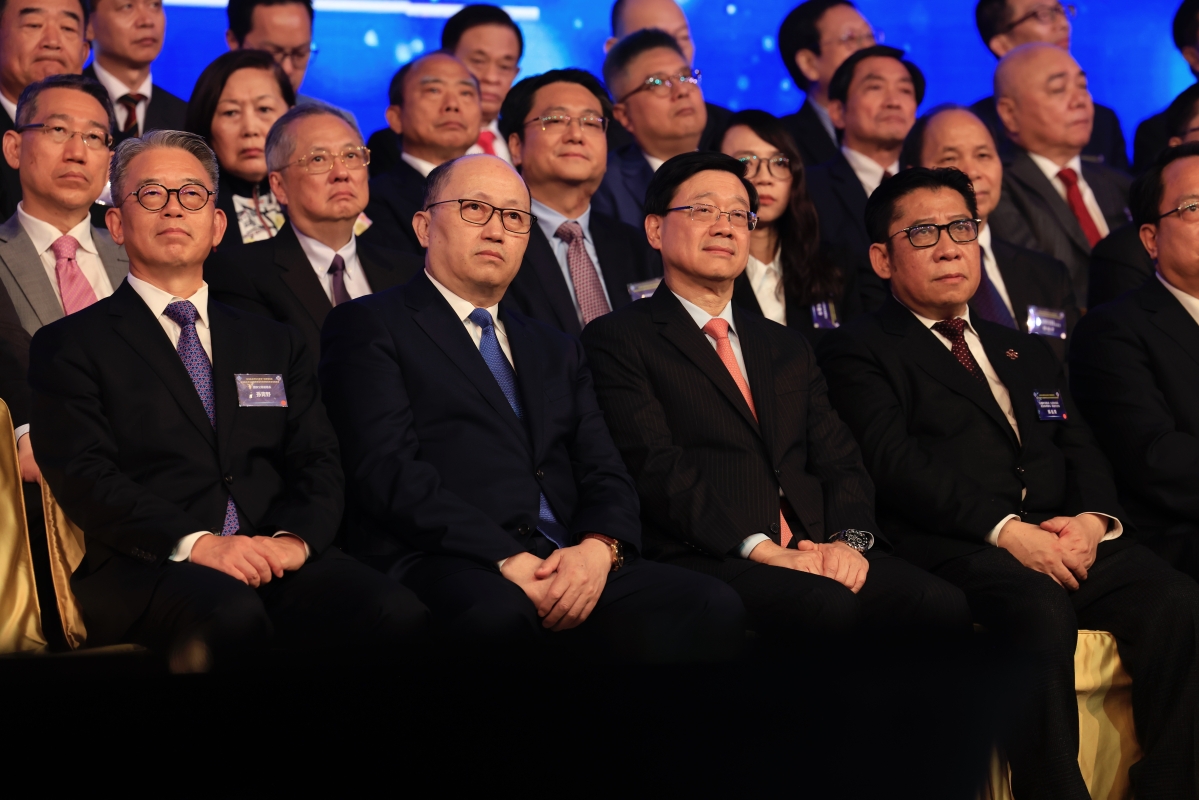 香港特區行政長官李家超、中央政府駐港聯絡辦主任鄭雁雄、駐港國安公署副署長孫青野、外交部駐港特派員公署副特派員潘雲東等出席主禮