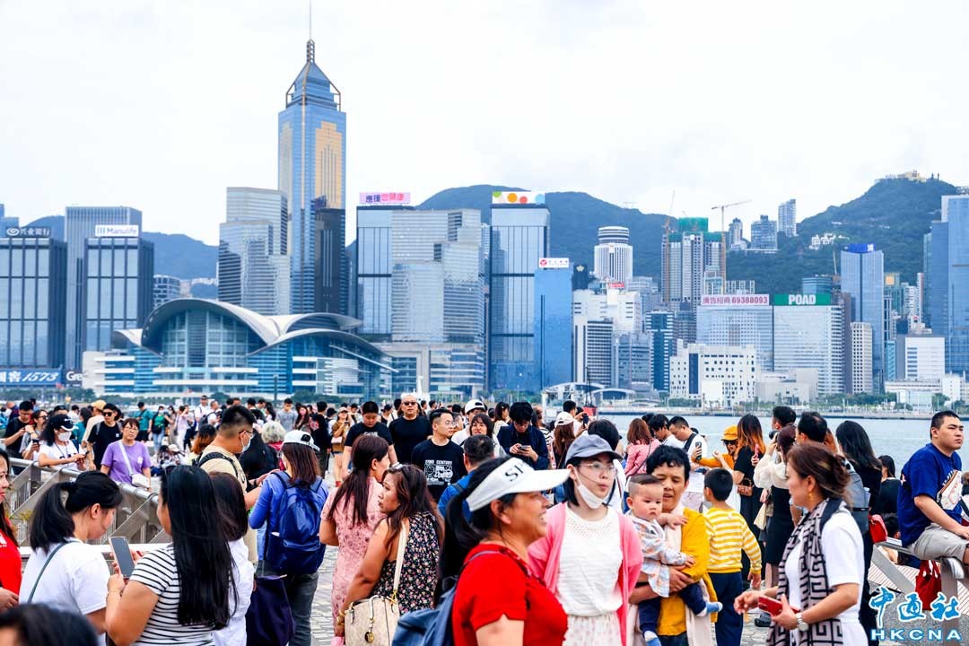 5月2日,香港尖沙咀。當日,香港特區行政長官李家超出席行政會議前表示,剛過去的星期六迎來內地一連五日的“五一黃金周”假期,星期六、日共有超過76萬人次旅客入境,當中超過32萬人次內地旅客,計及餘下兩日假期,估計整個假期將有60萬內地旅客來港。(香港中通社記者 曹文毓攝)
