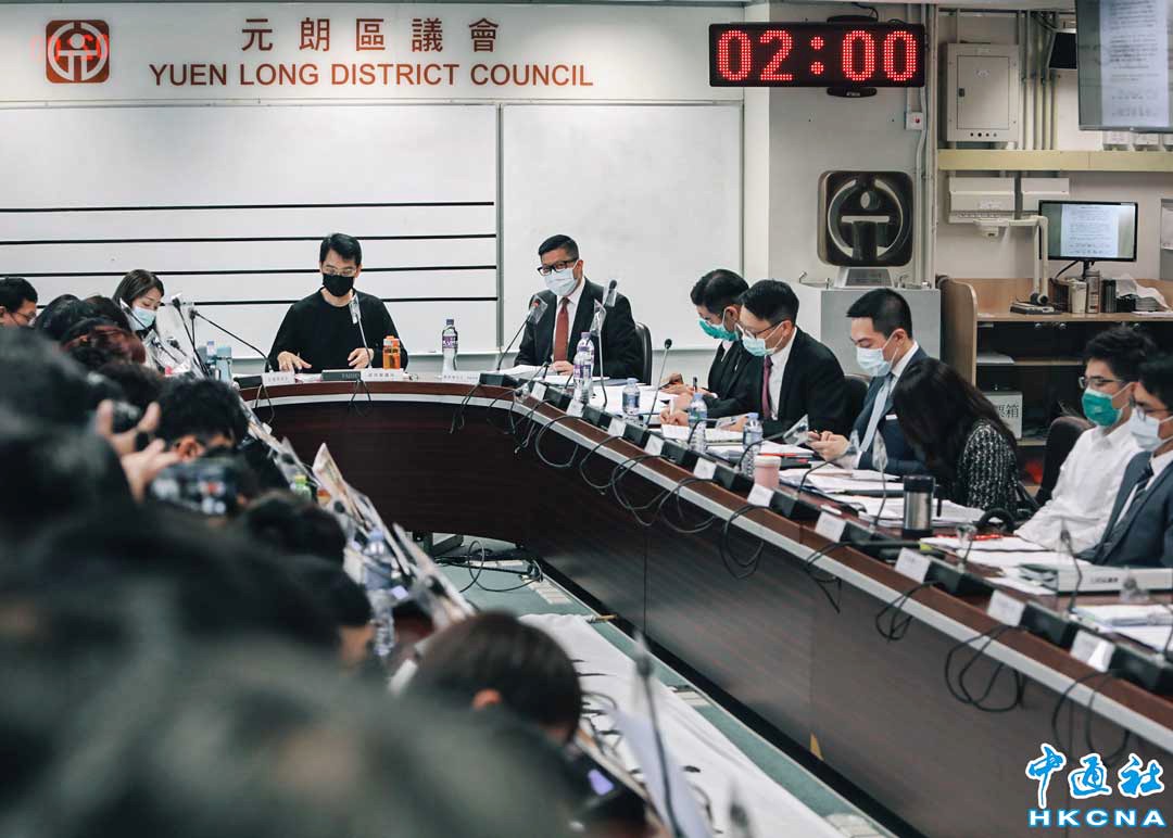 5月2日,香港特區政府公佈新一屆區議會改組方案。行政長官李家超表示,第七屆區議會區議員總數為470人,與現時479名議員相若。組成方面,由委任、地區委員會界別選舉、以及由區議會地方選區選舉產生,數目比例約為“442”,另加27名當然議員。圖為元朗區議會資料圖片。(香港中通社記者 謝光磊攝)