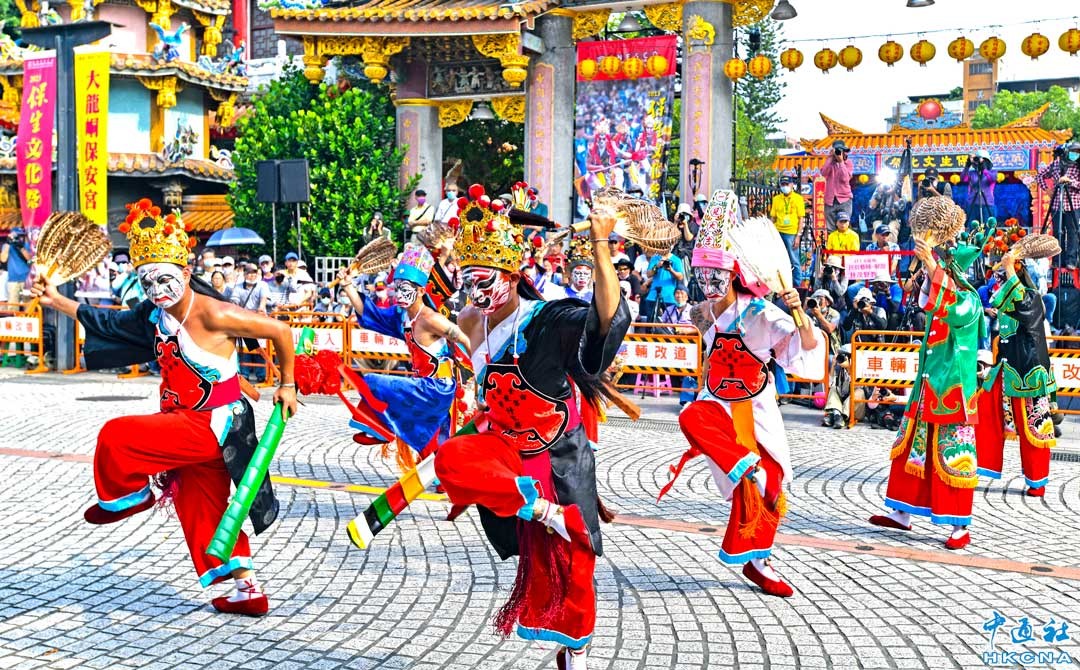台灣台北市大龍峒保安宮5月3日慶祝保生大帝聖誕,舉辦保生文化祭,有民俗藝陣表演,其中最受民眾期待的為放火獅,結合蜂炮與傳統手工紙紮藝術,象徵辟邪除疫,現場炮聲加上煙火,十分震撼。香港中通社圖片