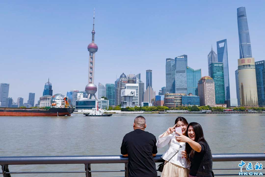 據媒體5日報道,中國GDP十強城市一季度經濟數據已全部出爐,北京、上海和深圳位居前三,廣州、成都和杭州分別超過重慶、蘇州和武漢,分列第四位、第六位和第八位。圖為遊客在上海外灘濱水區與黃浦江兩岸城市建築合影。香港中通社圖片