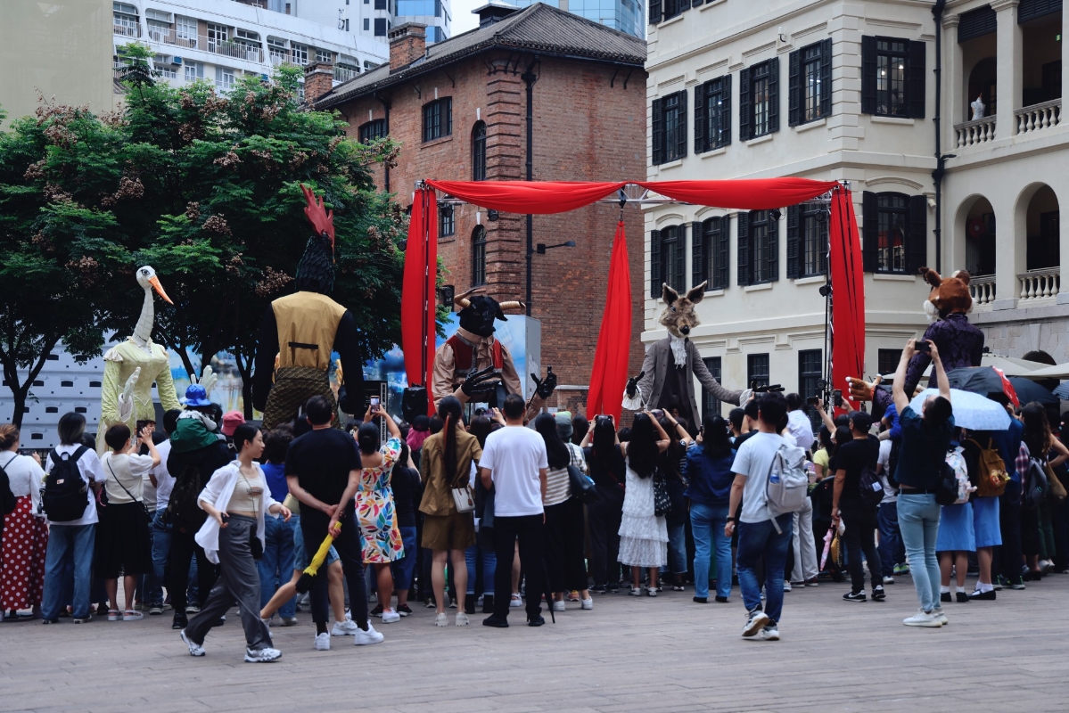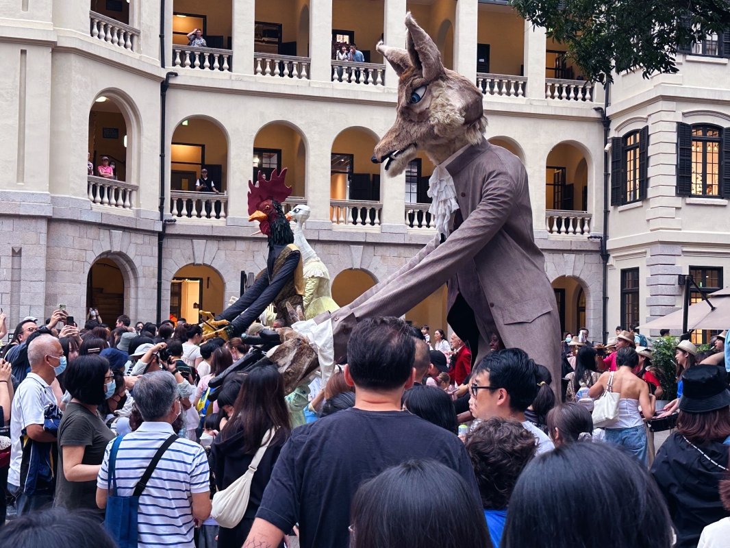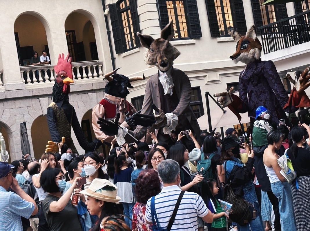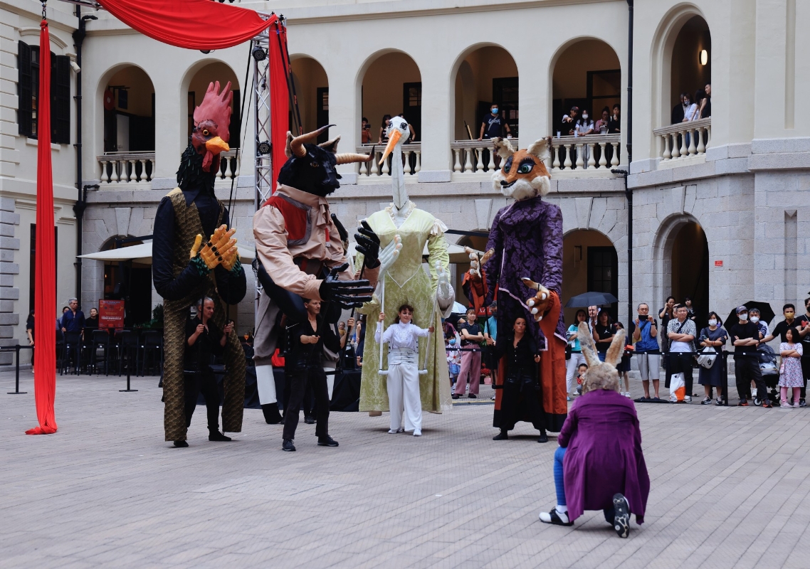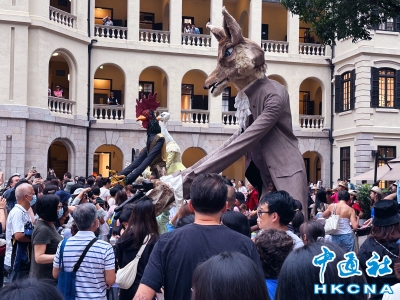香港新聞網5月16日電(記者 曹文毓)近期,法國五月藝術節主辦的《拉封丹寓言》木偶戲在香港大館一連多日舉行演出,吸引大批觀眾。木偶演出由 Archilbad Caramantran 劇團演繹法國著名詩人 Jean de La Fontaine 的多個寓言故事,表演結合巨型人偶、空中絲帶舞蹈、音樂和劇場元素。