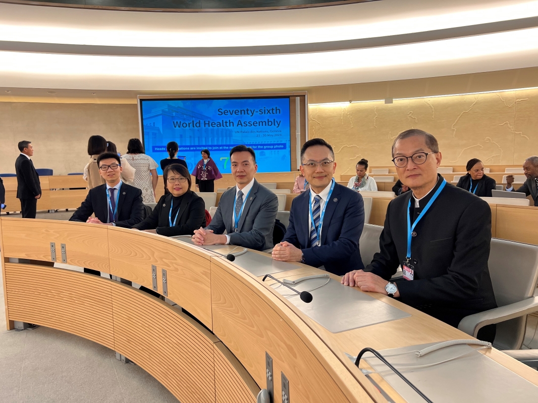 圖片來源:香港政府新聞處。盧寵茂(右一)和林文健(右二)在瑞士日內瓦出席世界衞生組織第七十六屆世界衞生大會的開幕式。 今年大會的主題是“世衞成立75年:拯救生命,推動人人健康”,討論涵蓋廣泛議題,包括檢視世衞在應對衞生突發事件方面的工作、全民健康覆蓋、基層醫療、傳統醫學、感染防控、偽劣藥物、非傳染性疾病和精神健康。 除了出席世界衞生大會的全體會議外,盧寵茂教授和林文健醫生亦與新加坡衞生部長王乙康會面,就抗擊新冠疫情分享經驗,以及就多個醫療相關議題包括基層醫療健康和醫療人手作交流。(完) 【編輯:崔靜雯】