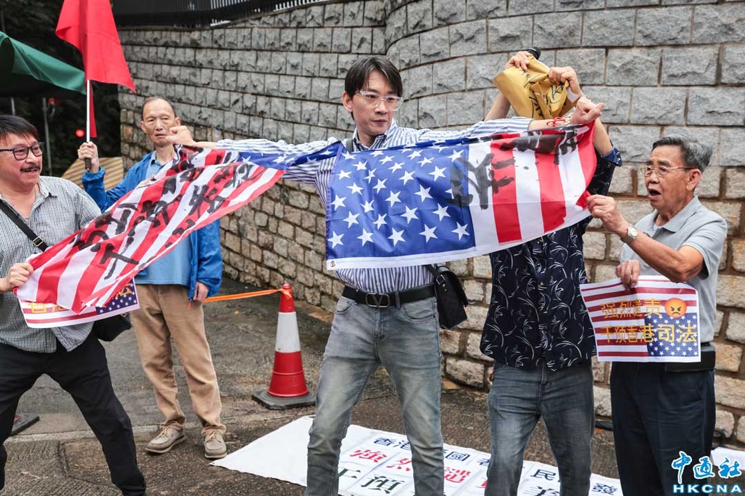 5月17日,多位香港市民自發前往中環美國駐港澳總領事館前抗議,強烈譴責美國抹黑香港國安法、干預香港司法制度。(香港中通社記者 謝光磊攝)