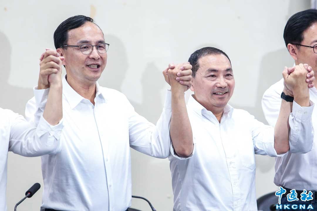 5月17日,台灣國民黨黨主席朱立倫(左)宣布提名新北市長侯友宜(右)為2024年”台灣領導人參選人“,同時也公佈多位立委候選人名單。 香港中通社圖片