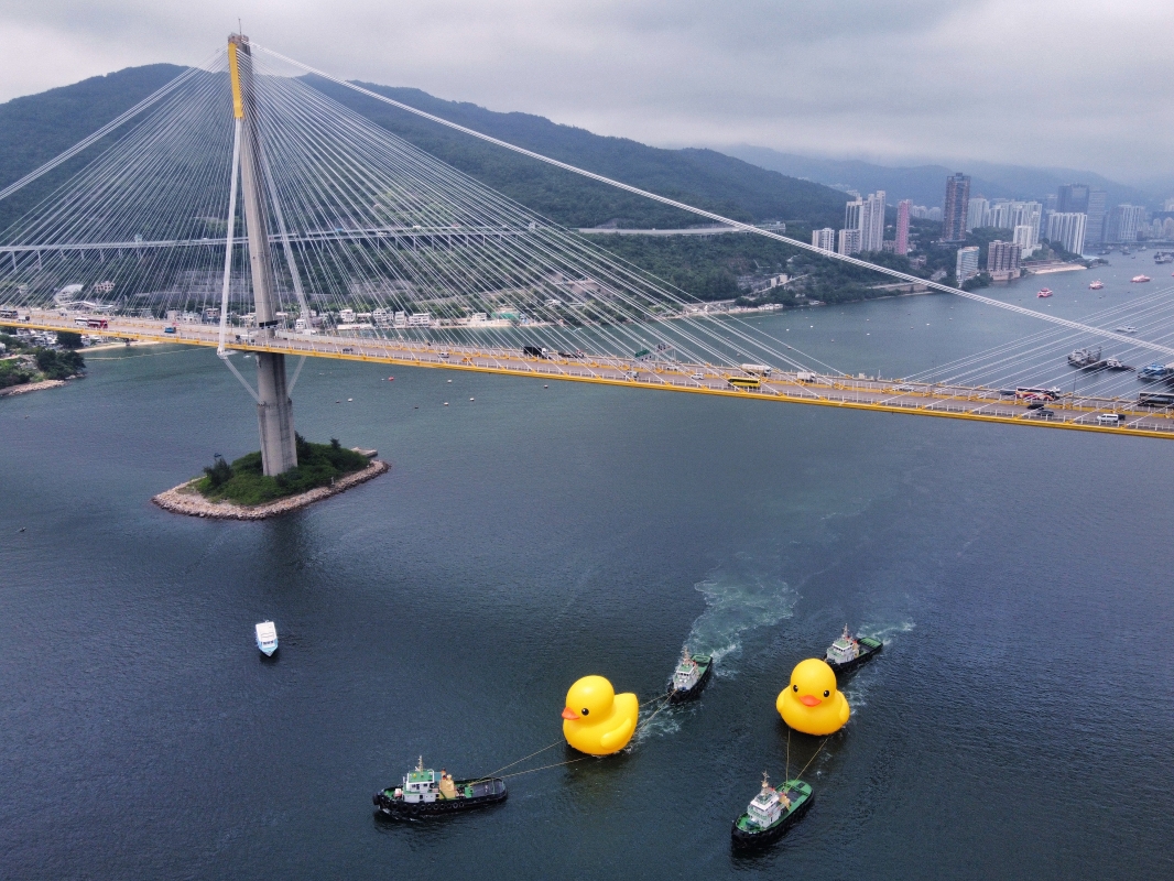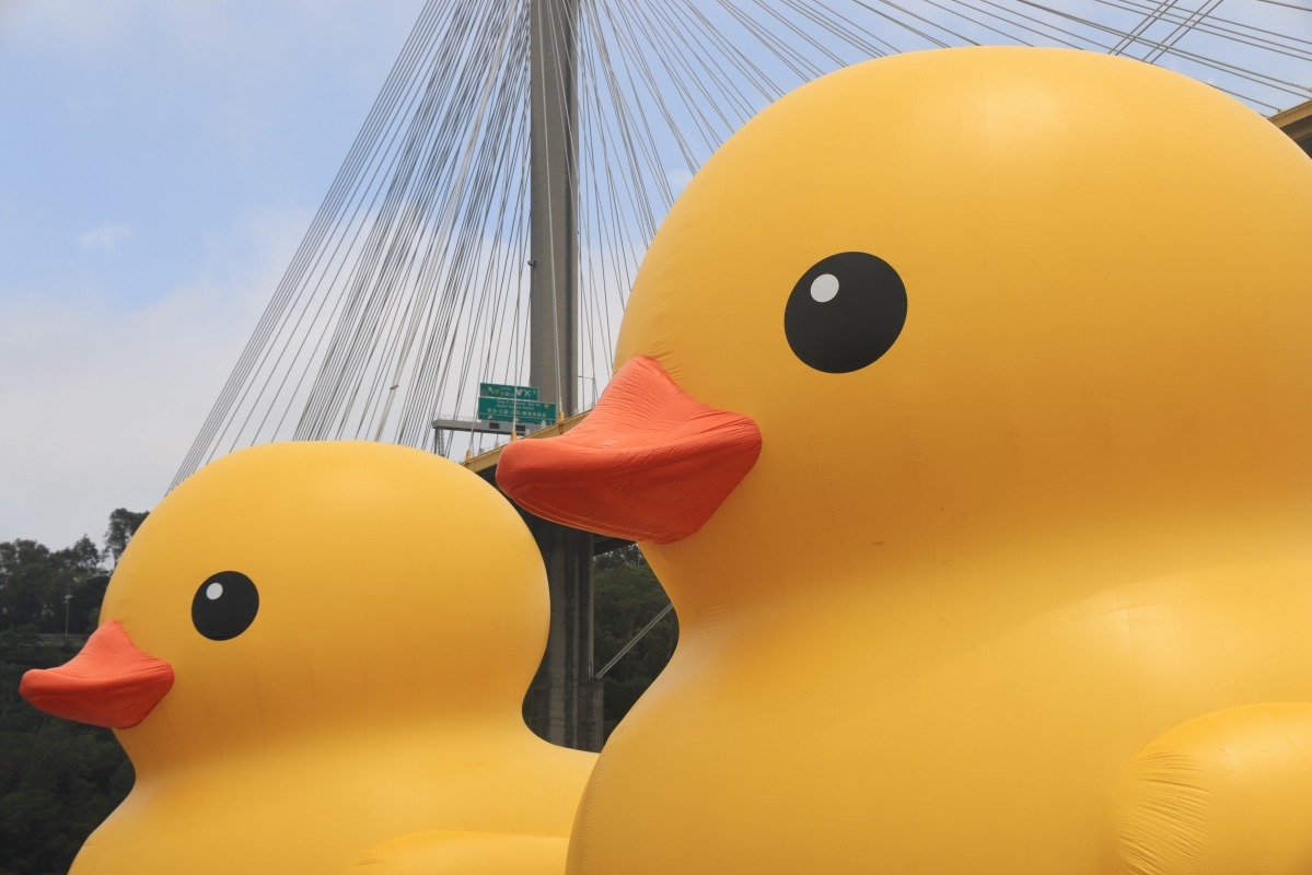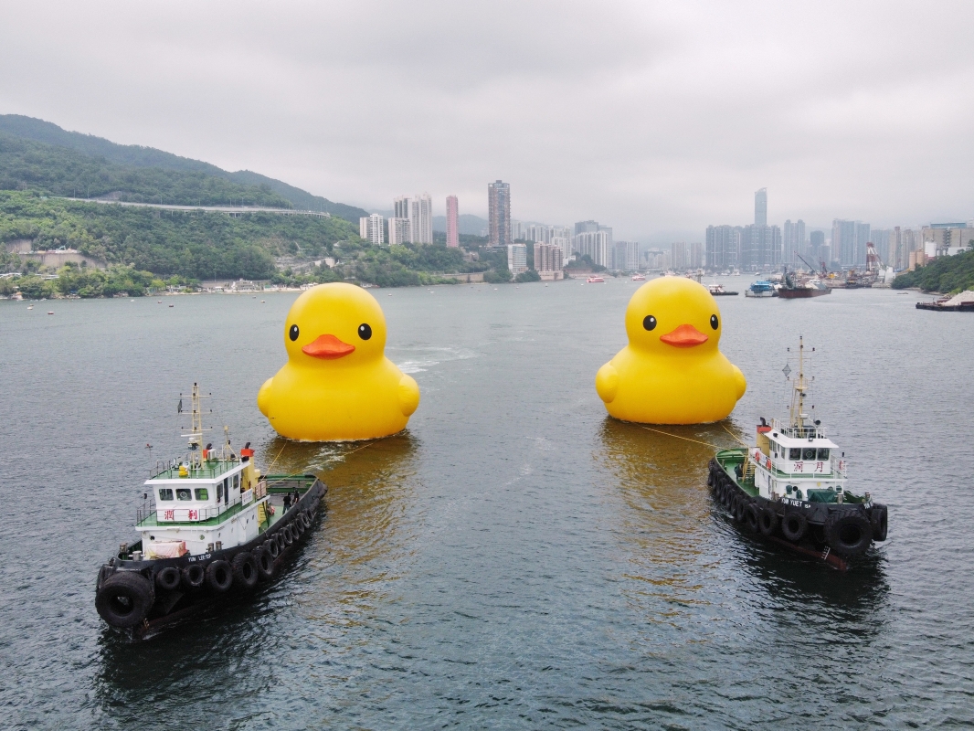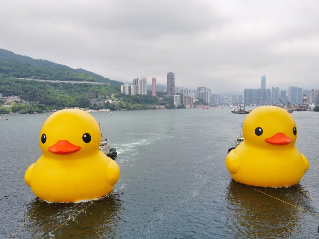“大黃鴨”携夥伴再次現身香港 【編輯:許其皓】