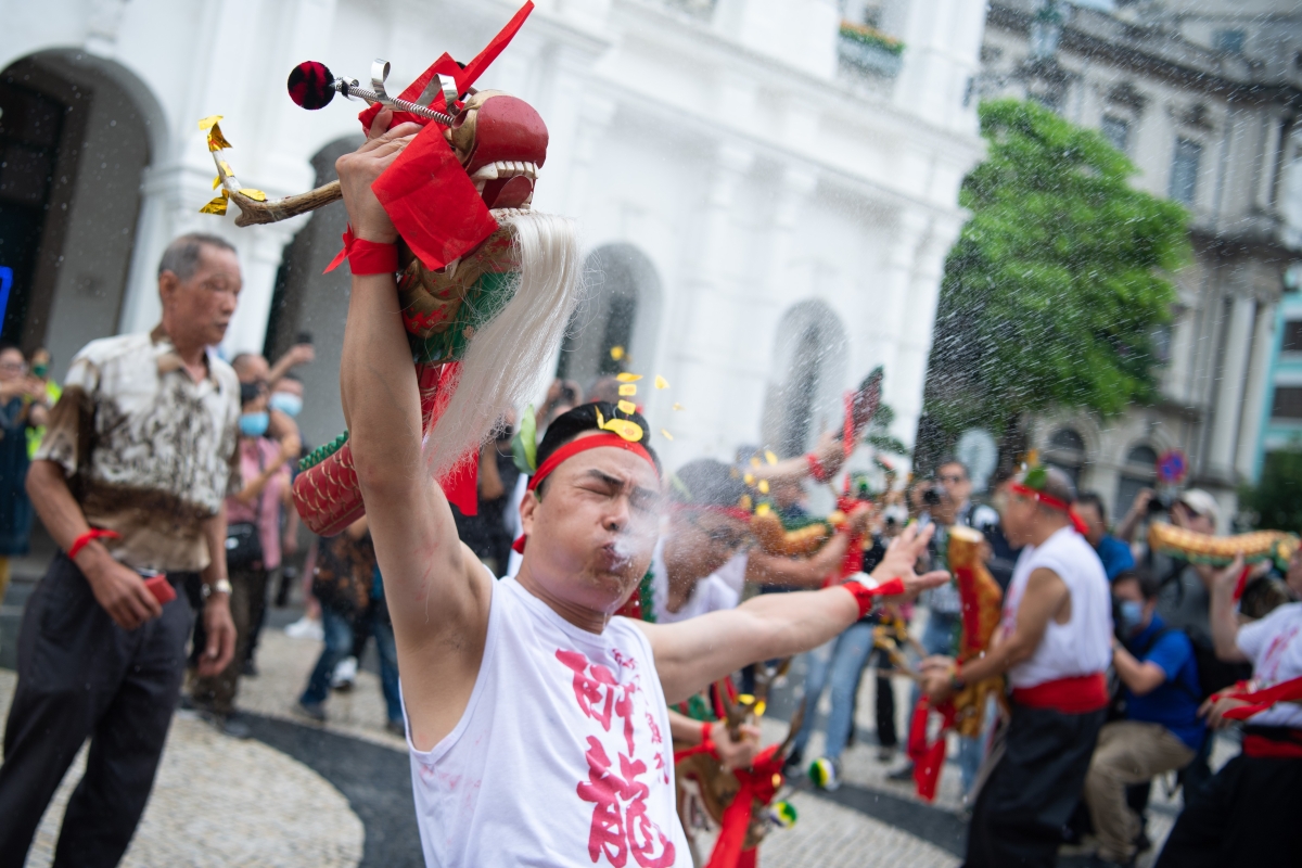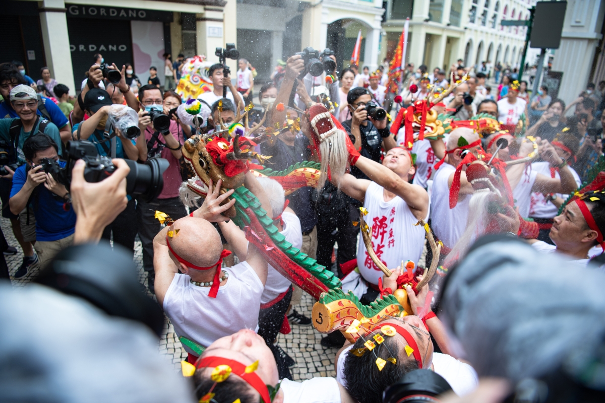 5月26日,醉龍節隊伍在“魚行醉龍節2023”上表演。當日,由澳門鮮魚行總會主辦的“魚行醉龍節2023”於三街會館前開幕,醉龍醒獅表演助興,場面盛大,同賀佛誕。 “魚行醉龍節”是澳門獨有的一項民間傳統節慶活動,於2009年列入《澳門非物質文化遺產預備名錄》,及後於2011年正式入選《國家級非物質文化遺產名錄》。