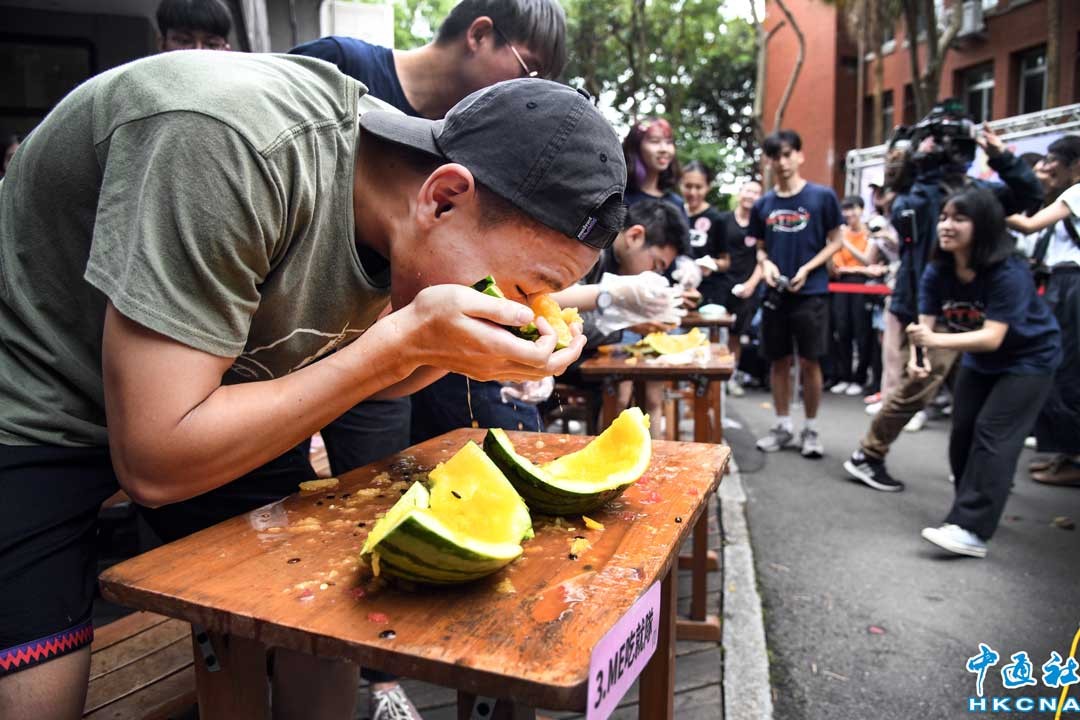 2023台灣師範大學“西瓜節”,5月24日在校內舉行吃西瓜大胃王比賽。西瓜節為台灣師範大學的傳統節日。據說因為西瓜的英文為watermelon,中文諧音是“我的美人”,學生藉著“西瓜傳情”,向愛戀對象示愛。不同顏色的西瓜代表不同意義;紅西瓜代表愛慕,黃西瓜代表友情。香港中通社圖片