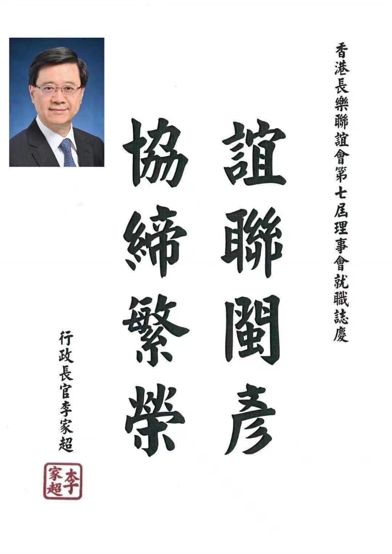 香港新聞網5月31日電 5月29日,香港長樂聯誼會慶祝長樂建縣1400年暨第七屆理事就職典禮圓滿舉行。中聯辦港島工作部副部長楊成偉,香港特區政府保安局副局長卓孝業,駐港國家安全公署聯絡局副局長王文獻,福建省委統戰部副部長李家榮,香港華閩集團總經理楊利玉,福州市長樂區委副書記、區長廖海軍,福州市長樂區委常委、長樂區海外聯誼會會長朱紅艷,第十三屆全國政協常委、香港福建社團聯會榮譽顧問周安達源,第十四屆全國政協委員、香港福建社團聯會主席施清流先生,第十四屆全國政協委員、香港福建社團榮譽主席吳換炎先生,香港福州社團聯會主席俞培俤,香港立法會議員陳恒鑌,香港立法會議員李世榮,香港立法會議員陳學鋒,香港立法會議員郭偉強,香港立法會議員陳家佩,香港立法會議員嚴剛,以及來自家鄉的慶賀團:福建省委慶賀團成員;福州市委慶賀團成員;福州市長樂區委慶賀團成員;香港福建社團聯會,香港福州社團聯會,及各兄弟社團的鄉賢、領袖等550位鄉親出席。