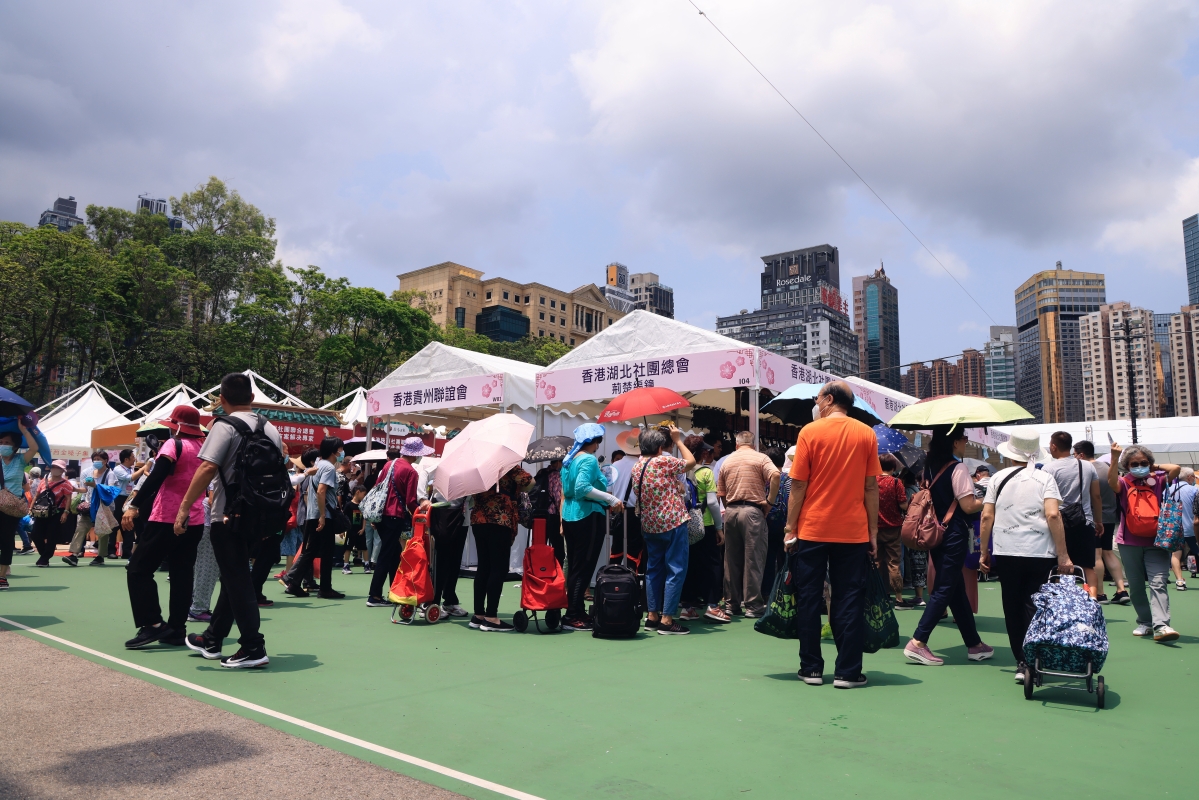 香港新聞網6月3日電(記者 曹文毓)由香港廣東社團總會、香港福建社團聯會、香港廣西社團總會等26個省級同鄉社團首次聯辦的“家鄉市集嘉年華”6月3日上午在維多利亞公園開幕。現場人潮湧湧,逾200個攤位擺出特色小吃,宣傳家鄉味道。