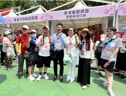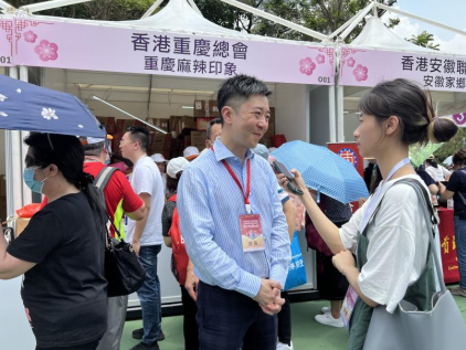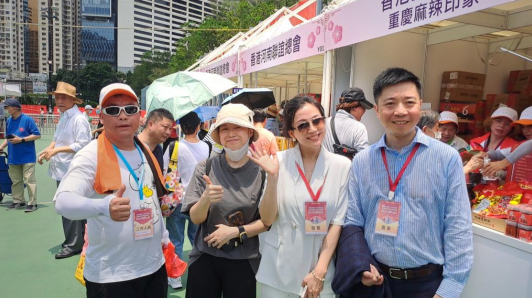 (香港重慶總會成員在展位前為重慶特色美食高喊“雄起”) 重慶市政協委員許小哲表示,很開心看到香港市民喜歡重慶美食,希望能夠趁此機會加強渝港文化交流,將重慶的美食及文化推廣到香港,說好重慶故事,說好香港故事。