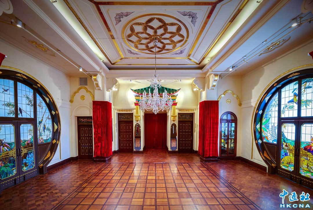 位於香港大坑道15A號的虎豹別墅,為昔日華僑商人胡文虎大宅,以胡文虎、胡文豹兩兄弟的名字命名。虎豹別墅6月9日將以導賞形式重新開放予市民參觀。圖為起居室。 (香港中通社記者 曹文毓攝)