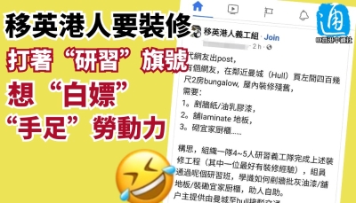 移英港人在臉書討論組發帖求助 該網友憶述,在他向鄰居的業主投訴之後,鄰居們搬去同層另一個單位開party,那間的住戶也是香港人,結果又因為同樣的原因被當地人投訴,最後他們又回到了原來的單位開派對,頻率甚至比以前還密集。 該網友繼續抱怨稱,雖然現在他們已經不再大聲唱歌了,晚上10點半後也會小聲點,但次次都有十幾人來參加聚會,一群小朋友又在花園大聲嬉鬧,自己無論是在家吃飯、調大電視聲音還是走出花園,都會受到隔壁噪音的騷擾,直言“無人會喜歡這樣”。 該網友表示,這裡只要有新人搬進來,一舉一動都會被周圍的人留意,而在這裡住了多年的鄰居之前就說過“我們這些中國人很吵”,似乎對於其他鄰居將自己和擾民的那幫港人“一竿子打死”感到十分不服。 該網友稱,現在最受噪音影響的就是自己,而其他鄰居雖然也有不滿,但尚不至於投訴的程度,於是求助網友,“大家覺得除了報council(委員會),我還可以怎麼做?” 最後,該網友向同樣加入了這個網絡討論組裡的鄰居發出警告,“希望你們看到這個帖文可以收斂一下”,更諷刺他們“已經成功將‘香港人好客之道這個美譽’在這個街區發揚光大,每次開party都有人討論”。 在香港“修例風波”期間,不少“黃絲”為爭取所謂的“自由”而走上街頭“打砸燒”,使全港市民的生活受到嚴重影響。如今,“黃絲”們又“為自由”移英,“碰巧”遇到了素質低下、只顧自己開party“自由”的“同路人”鄰居。當自己的生活被影響時,“黃絲”們終於坐不住了,立刻到網絡上哭訴和吐槽。這場鬧劇屬實看樂了一眾香港網友! 當相關帖文被網友截圖並於網絡傳播後,有網友留言諷刺道,這些“黃絲”“去英國就是為了‘自由’,有什麼問題嗎?”