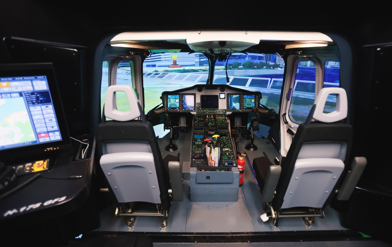 擬器內使用真實H175直升機的駕駛艙零件,包括顯示屏、控制系統、操控桿及座位等。