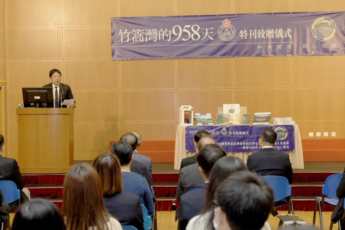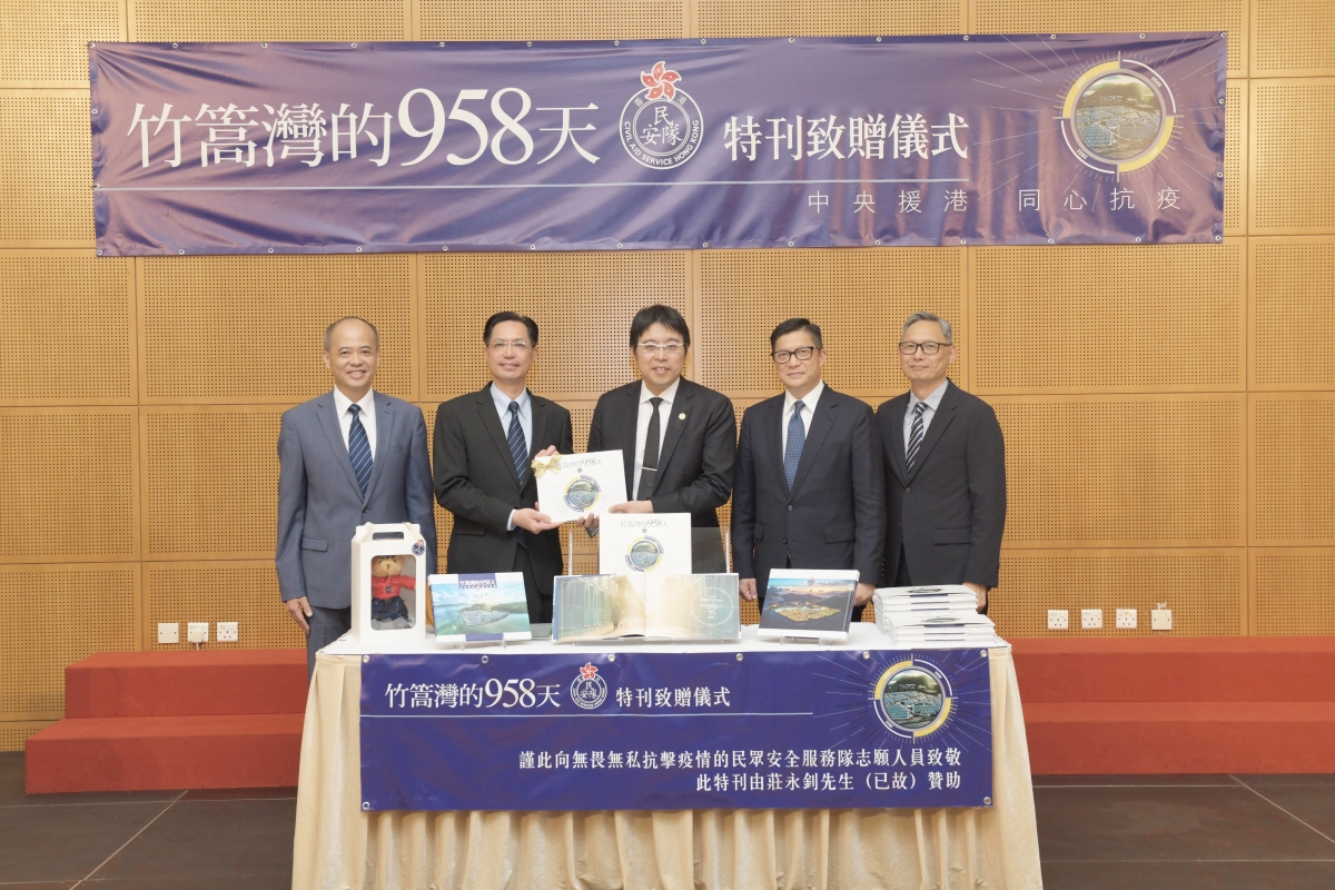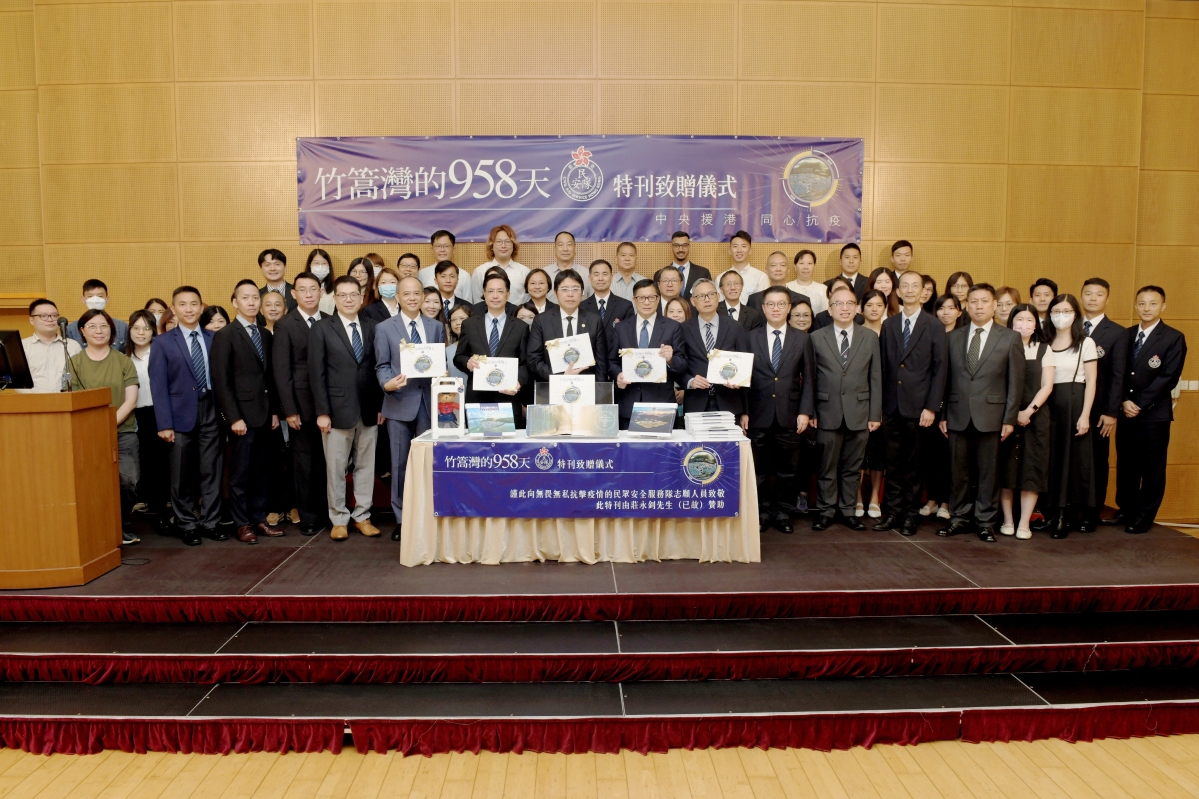 香港新聞網6月17日電 作為民眾安全服務隊(民安隊)16日舉行竹篙灣紀念特刊《竹篙灣的958天》致贈儀式,在保安局局長鄧炳強和副局長卓孝業見證下,接受一批贊助印製的特刊,贈予曾參與抗疫工作的民安隊人員。