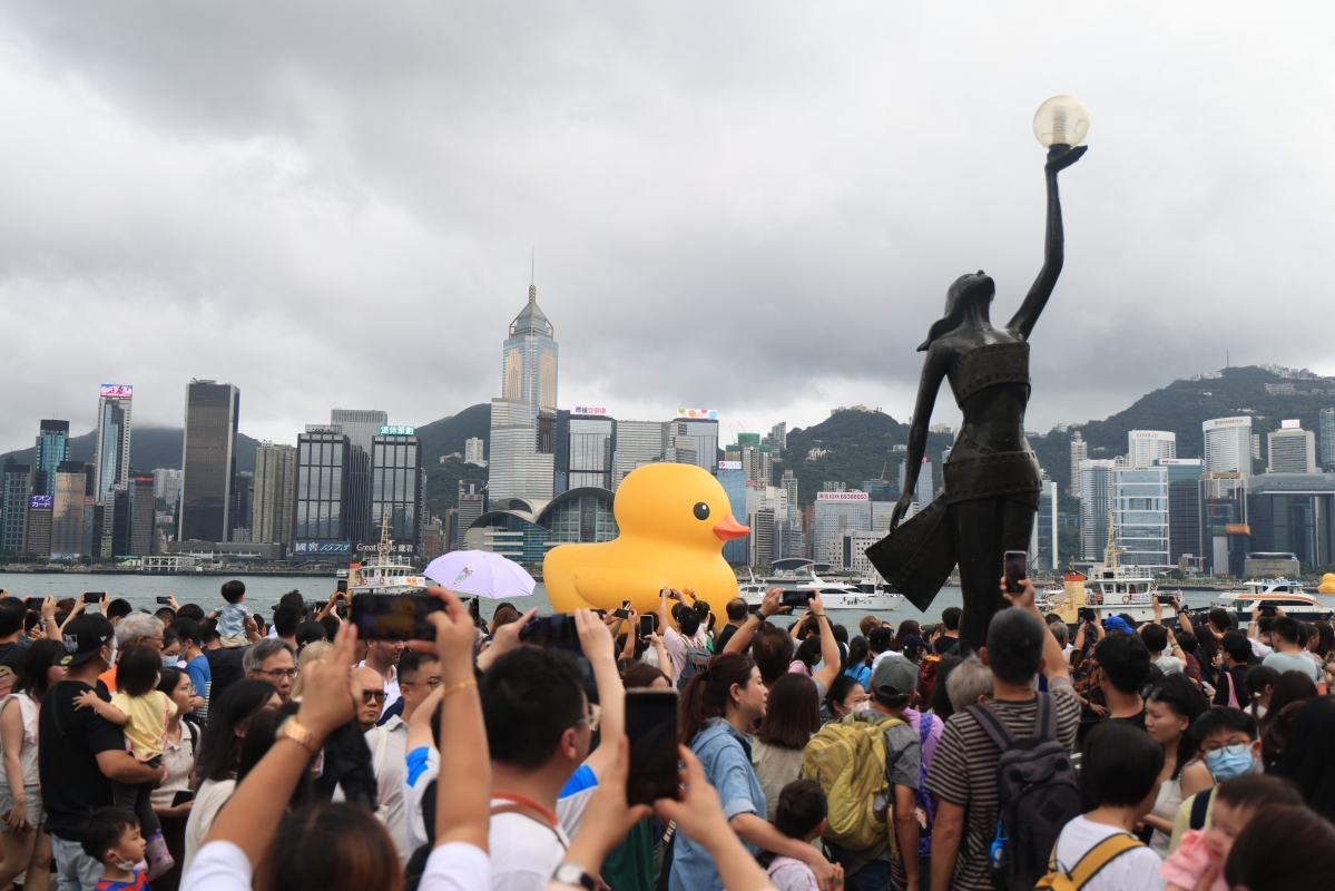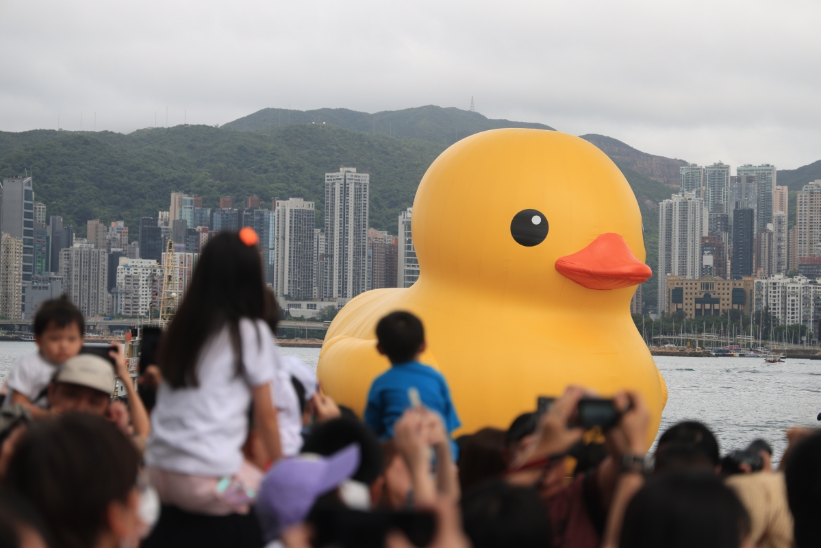 香港新聞網6月18日電(記者 許其皓)6月18日是香港大型公共藝術海上展覽《橡皮鴨二重暢》最後一日,停駐在中環海濱長廊對面維港海面的兩隻巨型橡皮大黃鴨,提早跟港人告別。當日下午,其中一隻黃鴨會由中環海面出發,前往維港兩岸多個地點,經過銅鑼灣避風塘、炮台山東岸公園主題區,再”游“向尖沙咀,途經著名地標如星光大道,”游“至文化中心後便折返中環海面,與另一隻黃鴨相聚,整個巡遊歷時約2小時,隨即結束此次訪港之旅。