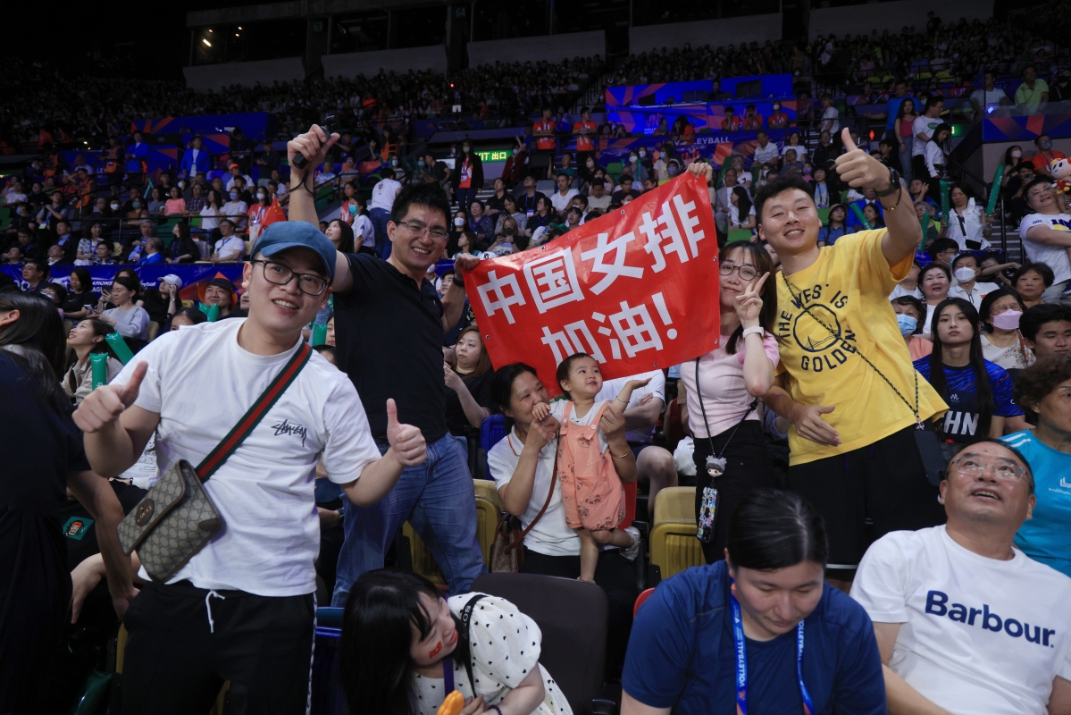 現場氣氛達到高潮,大批球迷入場為中國女排加油助威 【編輯:許其皓】