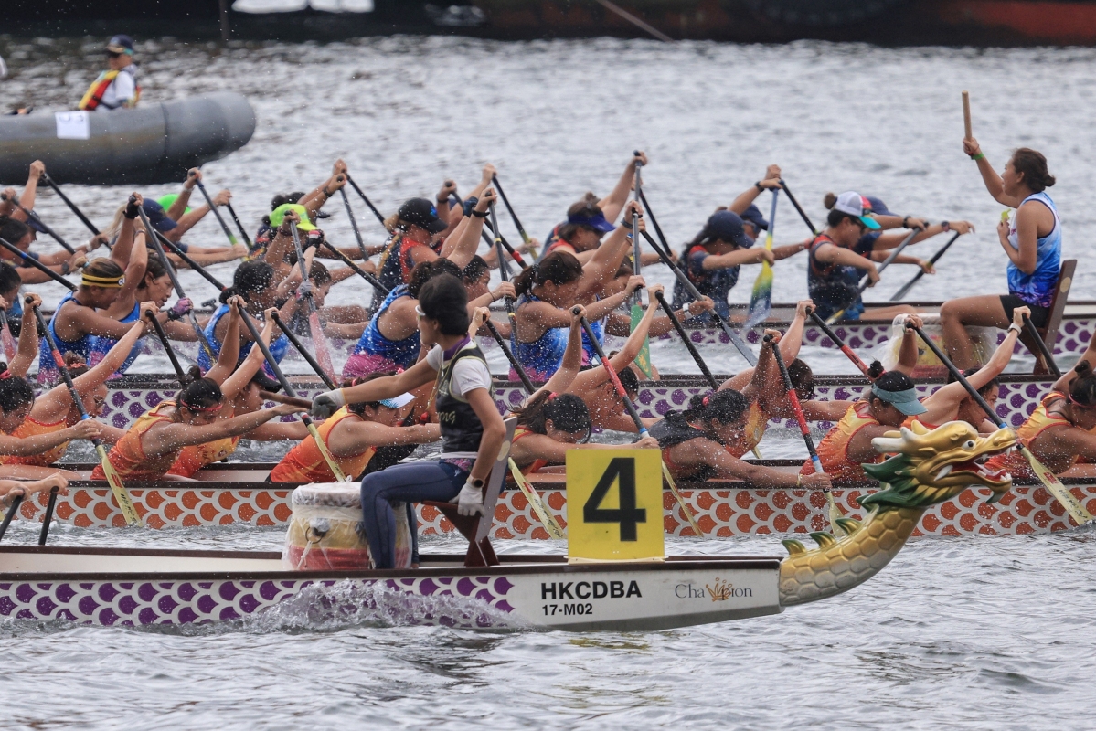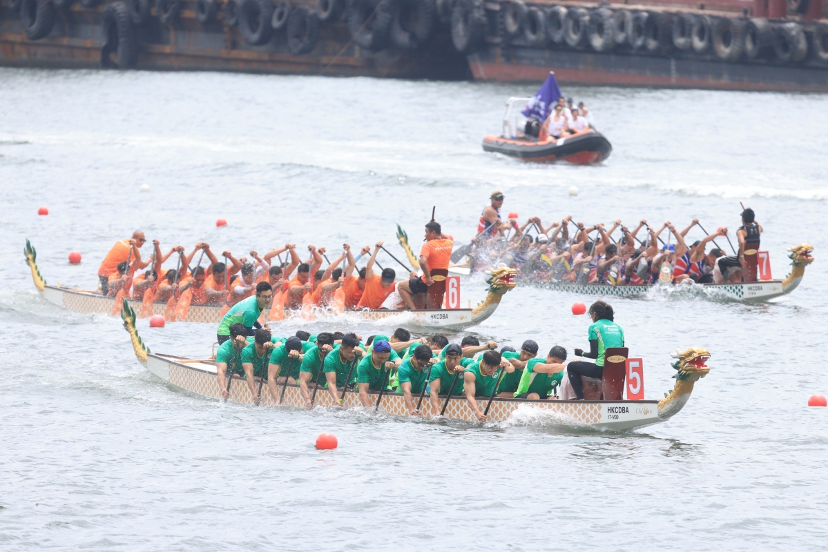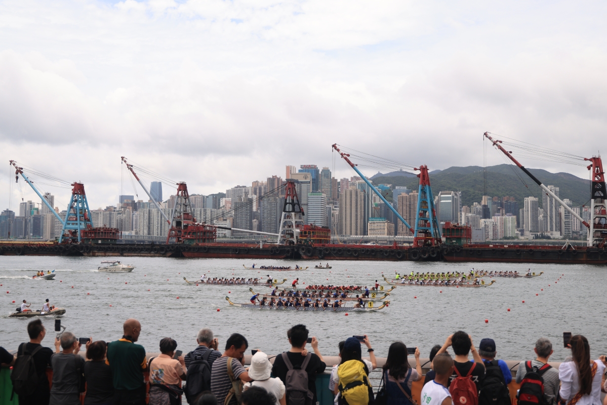 香港新聞網6月24日電(記者 許其皓)闊別四年的香港國際龍舟邀請賽6月24日在維多利亞一連兩日舉行。此次賽事共設有17項比賽,超過160支來自10個國家和地區的勁旅,近4000名龍舟好手雲集維港,展開精彩比拼,讓市民與旅客於尖東海濱一帶感受浪花飛濺的熱烈氣氛。