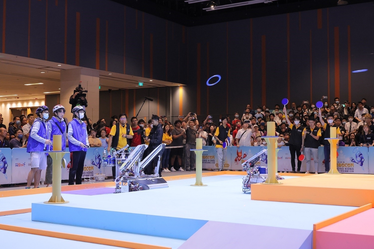 圖片來源:香港科技園公司。圖示“全港大專生機械人大賽2023”吸引逾200名來自八間院校學生以高科技兔子及大象機械人進行競賽。