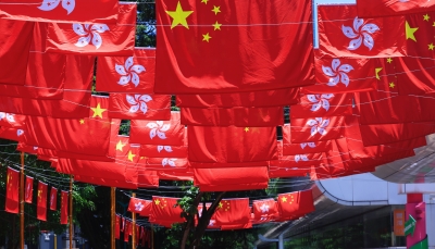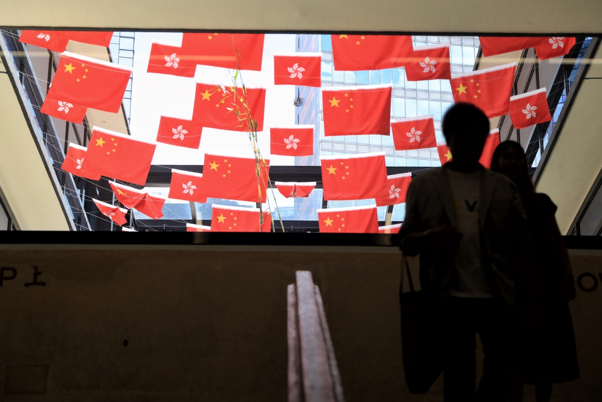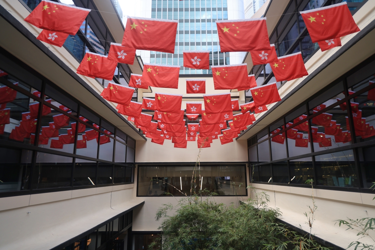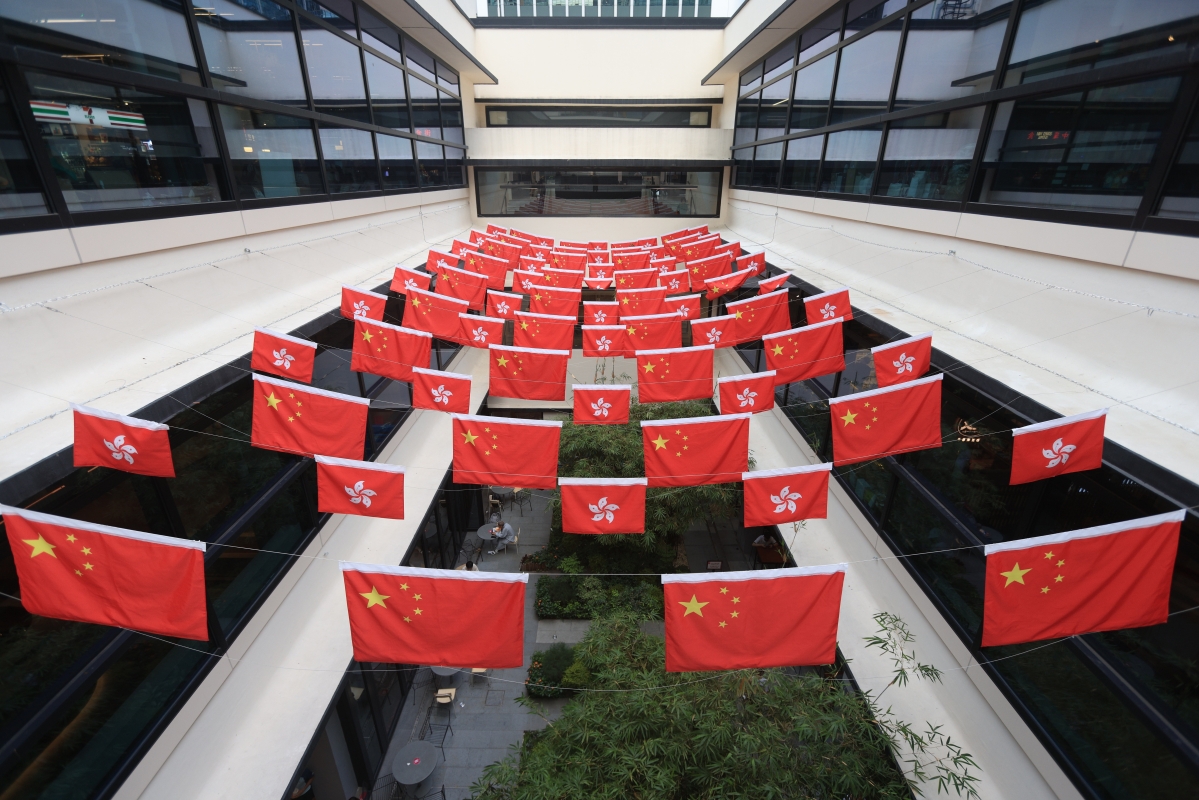 香港中環街市旗海飄揚慶回歸祖國26周年