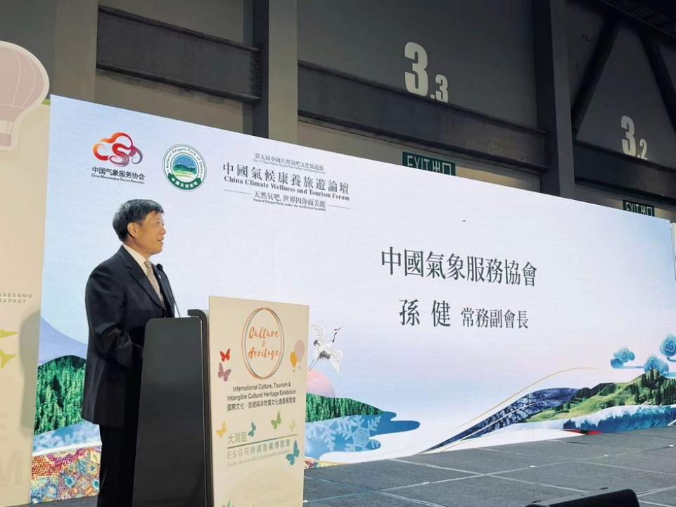 中國氣象服務協會常務副會長孫健致辭。 昨日(29日),主題為“天然氧吧,世界因你而美麗”的中國氣候康養旅遊論壇首先在鏗鏘有力地嗩吶表演——“氧吧之聲”中拉開帷幕。天然氧吧品牌創立於2016年,旨在順應全球綠色低碳發展趨勢,貫徹“綠水青山就是金山銀山”發展理念,立足氣候生態資源保護和開發利用,服務經濟社會綠色轉型發展。經過8年探索實踐,天然氧吧已經在中國內地313個地區成功創建。 “此次天然氧吧文化旅遊節和論壇活動的舉辦,標誌著天然氧吧品牌在國際合作上又邁出了重要一步。”中國氣象服務協會常務副會長孫健在致辭中表示,此次活動突出兩大亮點:一是資源“走出去”與客源“引進來”相結合。“走出去”尋新機,“引進來”謀發展。通過‘走出去’開展一系列主題活動,高效宣傳推介天然氧吧文化和旅遊新產品、新業態,吸引更多境外遊客走進氧吧地區,助推氧吧地區高質量發展。二是“招商”與“銷售”相結合。創新招商引資模式,激活氧吧地區氣候生態資源優勢,建立氧吧優質農產品供港渠道,豐富香港居民“菜籃子”,推動天然氧吧地區鄉村振興。