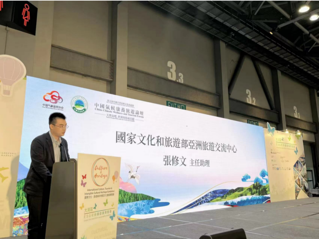 文旅部亞洲旅遊交流中心主任助理張修文。 文旅部亞洲旅遊交流中心主任助理張修文在致辭中表示,中國氣象資源豐富,旅遊市場潛力巨大,遊客對健康出行的多樣化需求也在逐年增加。如今,大衆對良好氣候生態環境的追求使得氣候康養旅遊產業呈現高速發展的態勢,氣候康養正在成為文化旅遊行業的新的風口。亞旅中心讚賞協會在氣象資源賦能文旅產業方面發揮的積極作用,大力支持文旅產業和氣象服務業進一步深度融合、共同發展。 中國氣象服務協會秘書長屈雅在論壇做《天然氧吧,世界因你而美麗》的主題報告。屈雅介紹,天然氧吧是指自然稟賦優越的區域,是宜居宜業宜遊宜養的氣候生態旅遊目的地,也是全國著名氣候生態品牌和綠色生態產業集群。天然氧吧是全球氣候變化背景下的氣候適應與減緩行動,更是中國雙碳政策背景下的氣象行業實踐。