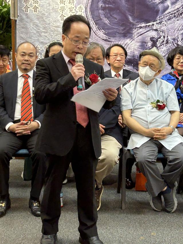 向雲先生講話:表示感謝承辦單位和支持單位,感謝家人長期的包容支持鼓勵,以及慨括了他學藝的心路歷程,並勉勵同好在學藝道路上莫因身處順逆之境的變化而輕言放棄!
