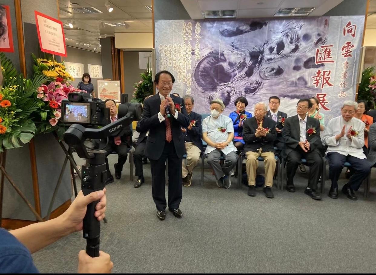香港新聞網7月2日電 2023年6月27日下午三時,由主辦人周進強(向雲)的“ 向雲書畫作品匯報展 ”開幕典禮於香港中環愛丁堡廣場5號 香港大會堂高座7樓展覽館順利舉行。舉辦期三天。 承辦單位為:香港詩人聯盟、香港詩人報。支持單位:香港福建書畫硏究會、中國古文字藝術學會、香港書法協會、維港作家匯、全球華人詩詞協會、香港平潭社團聯會。 出席的主禮嘉賓有:中國古文字藝術學會會長中帑 (先生)、MH 香港特別行政區選舉委員會委員.香港蘭亭學會主席李錦賢(先生)、香港書法協會會長馮萬如(先生)、中國書法協會香港分會副會長.香港福建書畫研究會副會長秦嶺雪(先生)、中國書協香港分會副秘書長王建(先生)、港區福建省政協委員.香港平潭社團聯會主席林官貴(先生)、兩岸和平發展聯合總會副主席.香港泉州社團聯會榮譽會長鄭亞鵬(先生)、香港詩人聯盟主席.香港詩人報社長恆虹(先生)、季羨林基金會主席曾昭詢(先生)、香港退伍軍人聯會創會會長.香港黃埔軍校校友會執行會長蔣禎(先生)、廈門大學旅港校友會理事長黃隆基(先生)、廈門大學旅港校友會永遠名譽理事長徐蘭芳(女士)、藝豐室內設計有限公司董事長曾華恩(先生)、國際中小企聯合商會會長.群智國際(控股)有限公司董事總經理羅志光(先生)、小象文學藝術館 館長(贊助單位) 向春宇(博士)、香港女作家協會會長何佳霖(女士)、浮詩繪.中國大灣區詩匯主席施維(女士)、粤港澳大灣區文學藝術聯盟副主席黃元元(先生)及詩人好友觀眾書畫愛好者近百人参加。